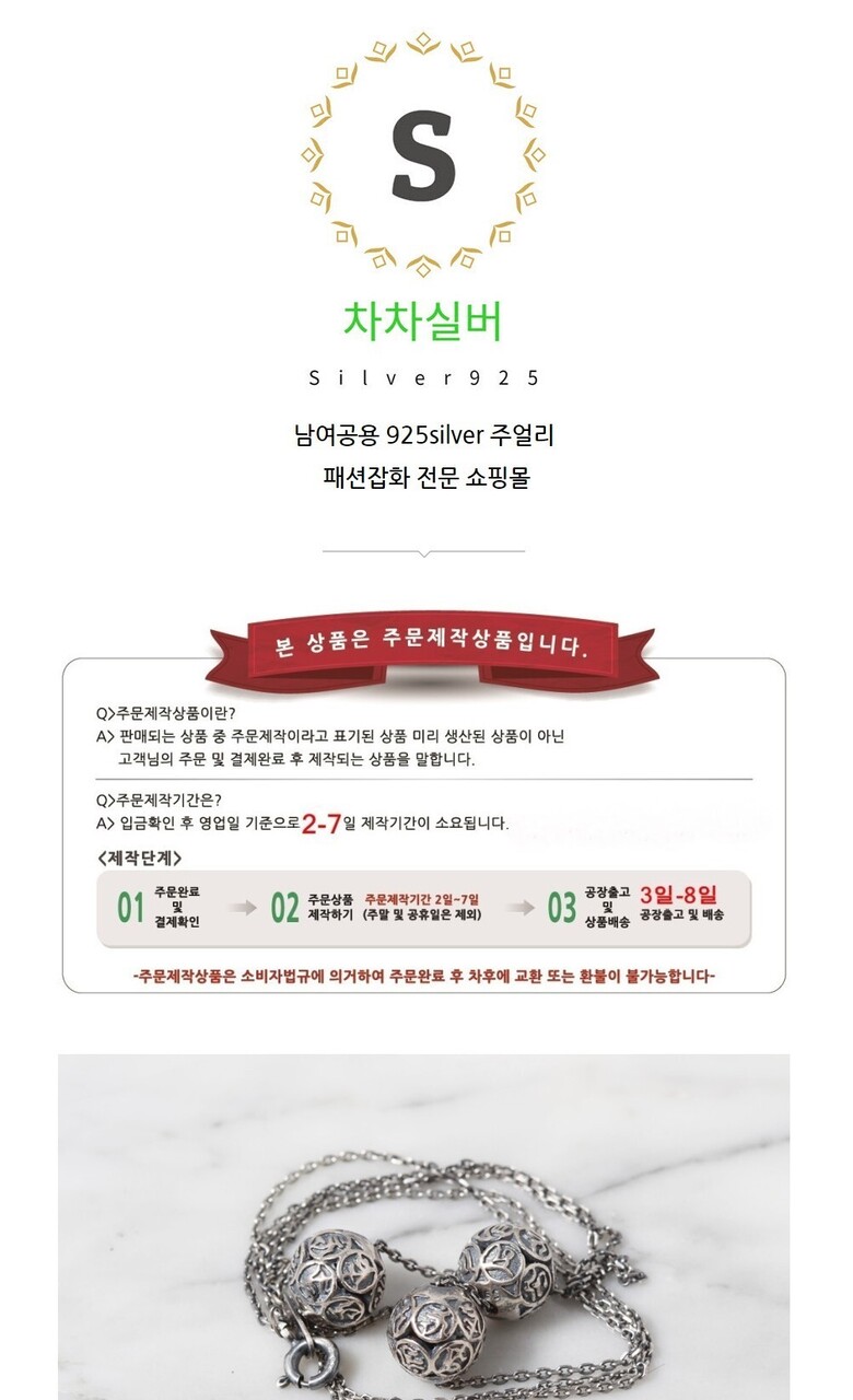 1. 소재 / 순도 / 밴드재질 순은 92.5%이상 함량