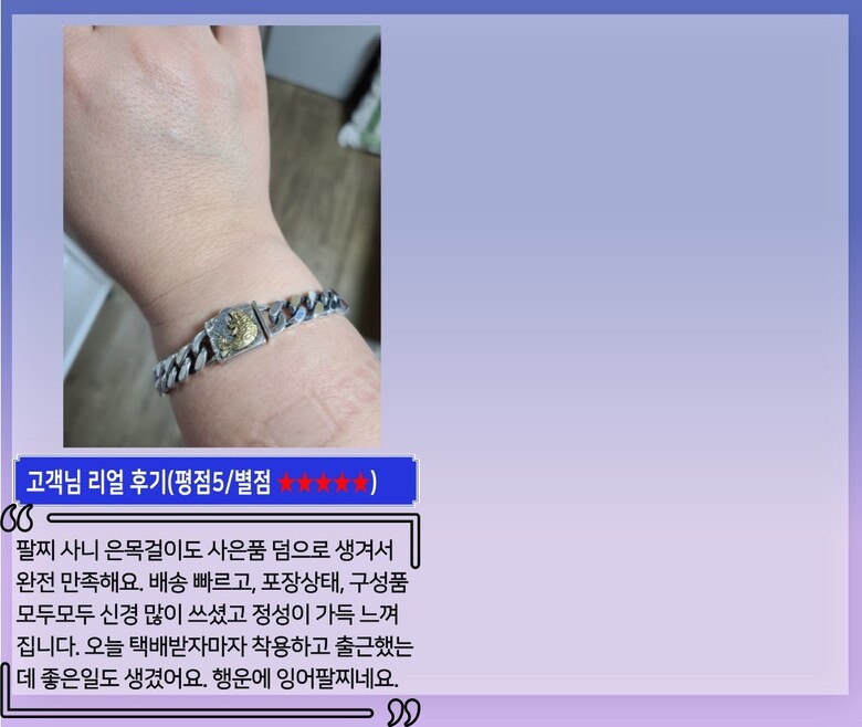 1. 소재 / 순도 / 밴드재질 순은 92.5%이상 함량