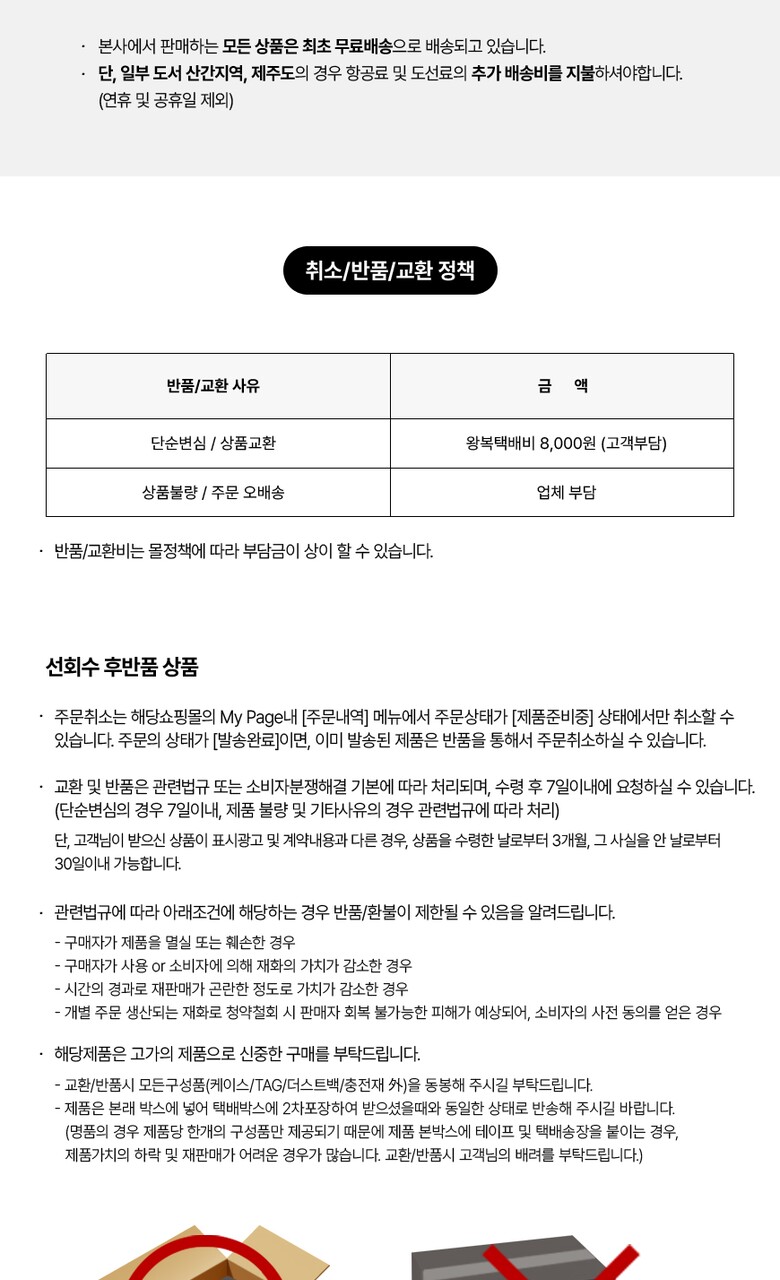 반품 유의사항