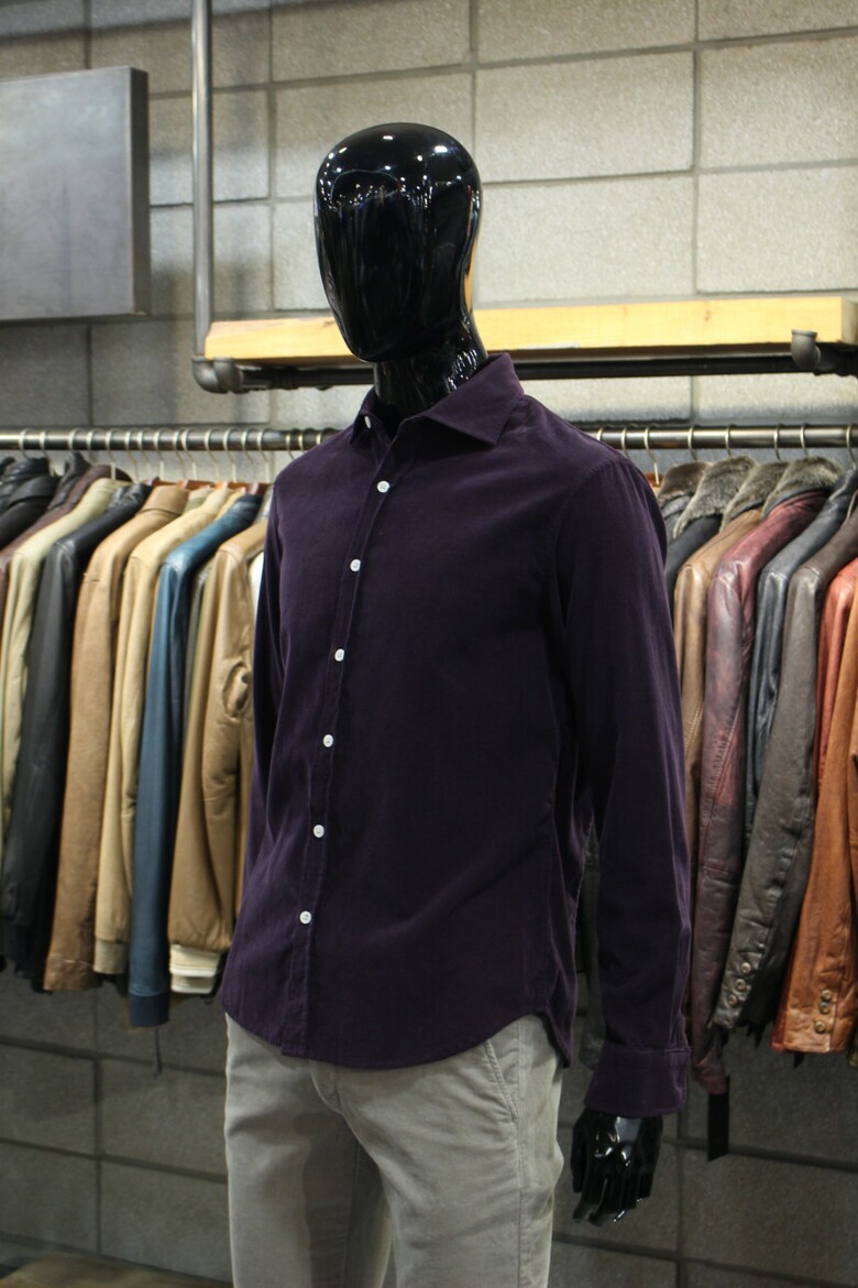 와이드카라 슬림핏 바이올렛코듀로이셔츠