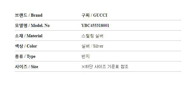[명품] YBC455318001 455318 J8400 0701 공용 반지