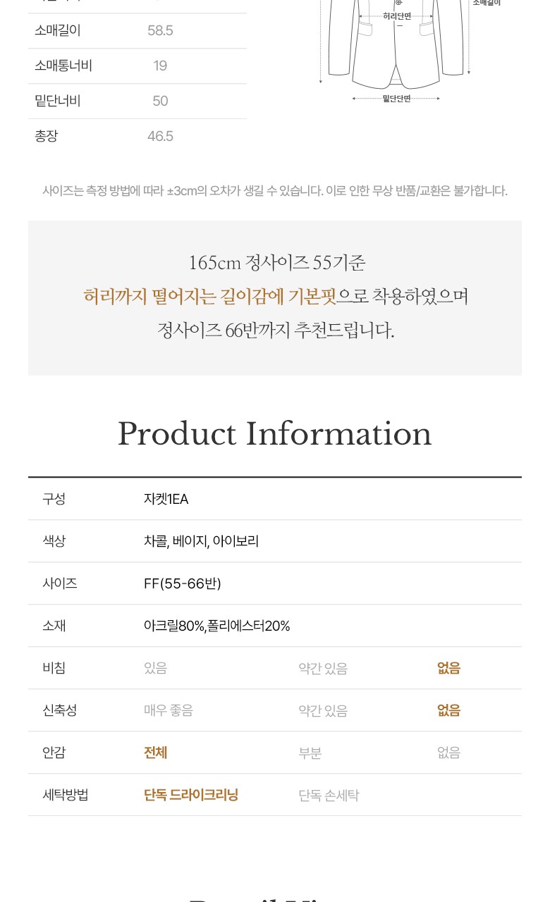 1. 제품 소재 (섬유의 조성 또는 혼용률을 백분율로 표시, 기능성인 경우 성적서 또는 허가서) | 아크릴80%,폴리에스터20% |