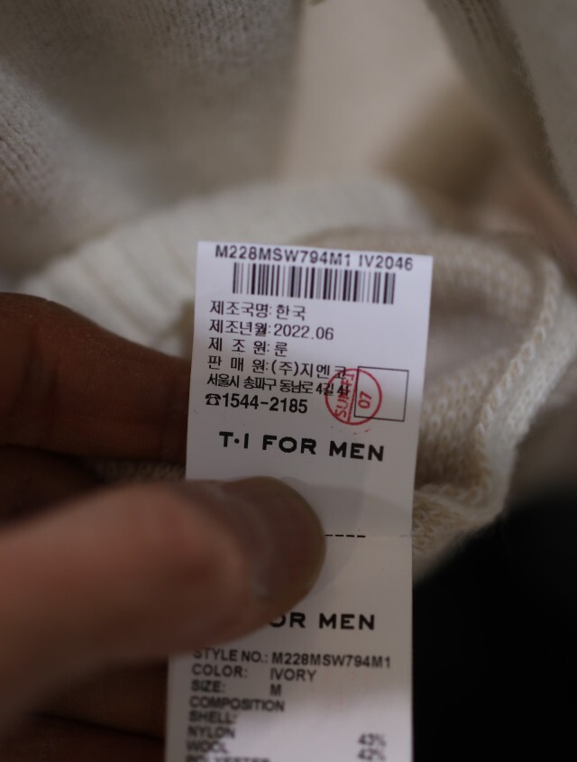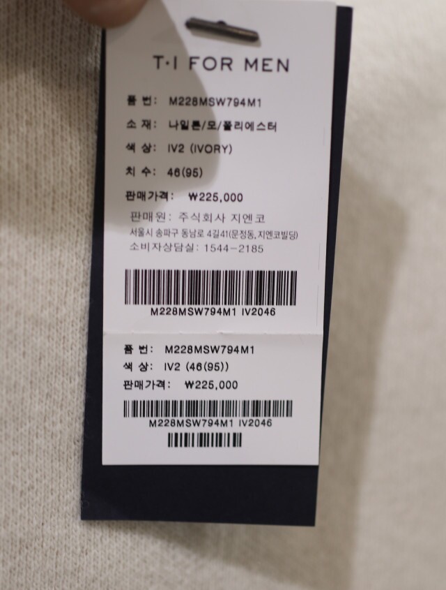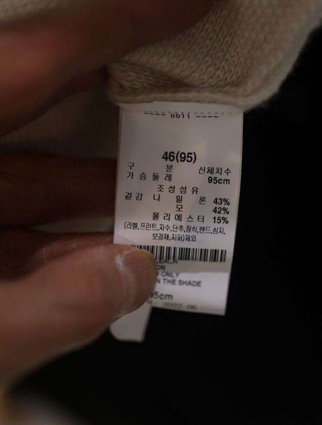 겉감 나일론 43%, 모 42%, 폴리에스터 15%