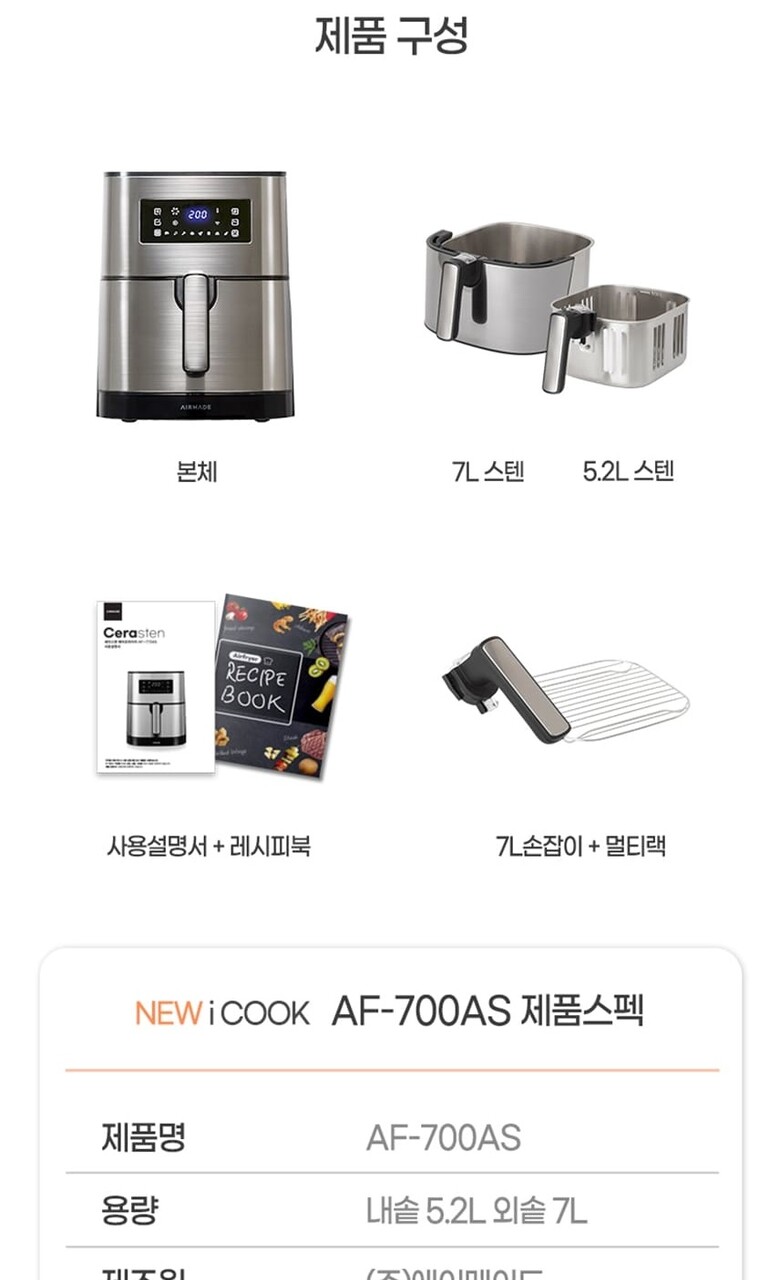 [에어메이드] 듀얼 스테인레스 에어프라이기 AF-700AS