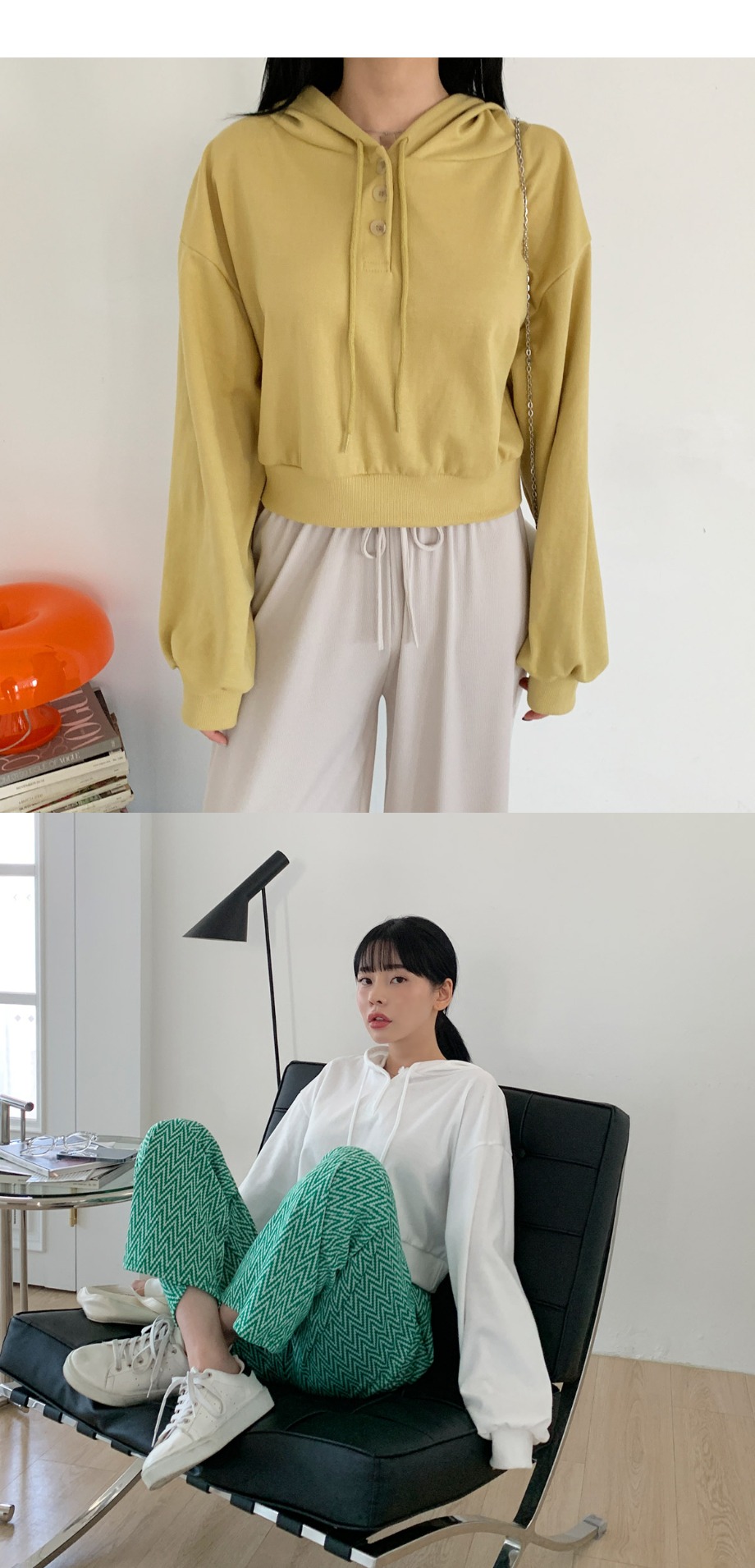 [ 키이디 크롭 버튼 후드 티셔츠 ]
