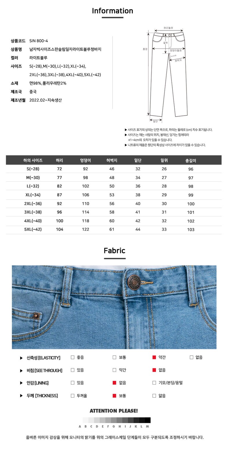 블레오[BLEO] 남성 봄 가을 빅사이즈 일자 스판 연청 청바지