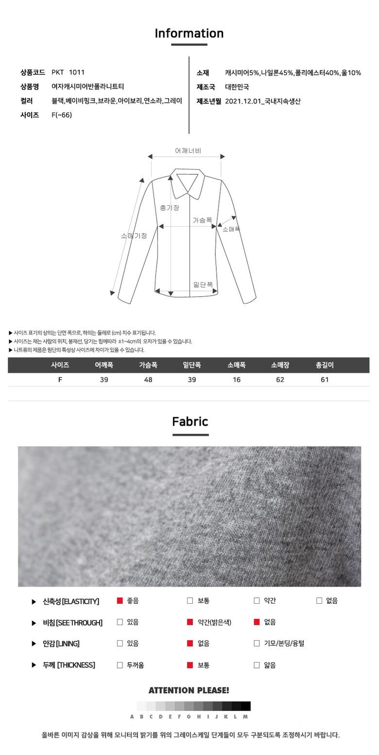 블레오[BLEO] 여성 겨울 캐시미어 부드러운 반폴라 라운드 니트티