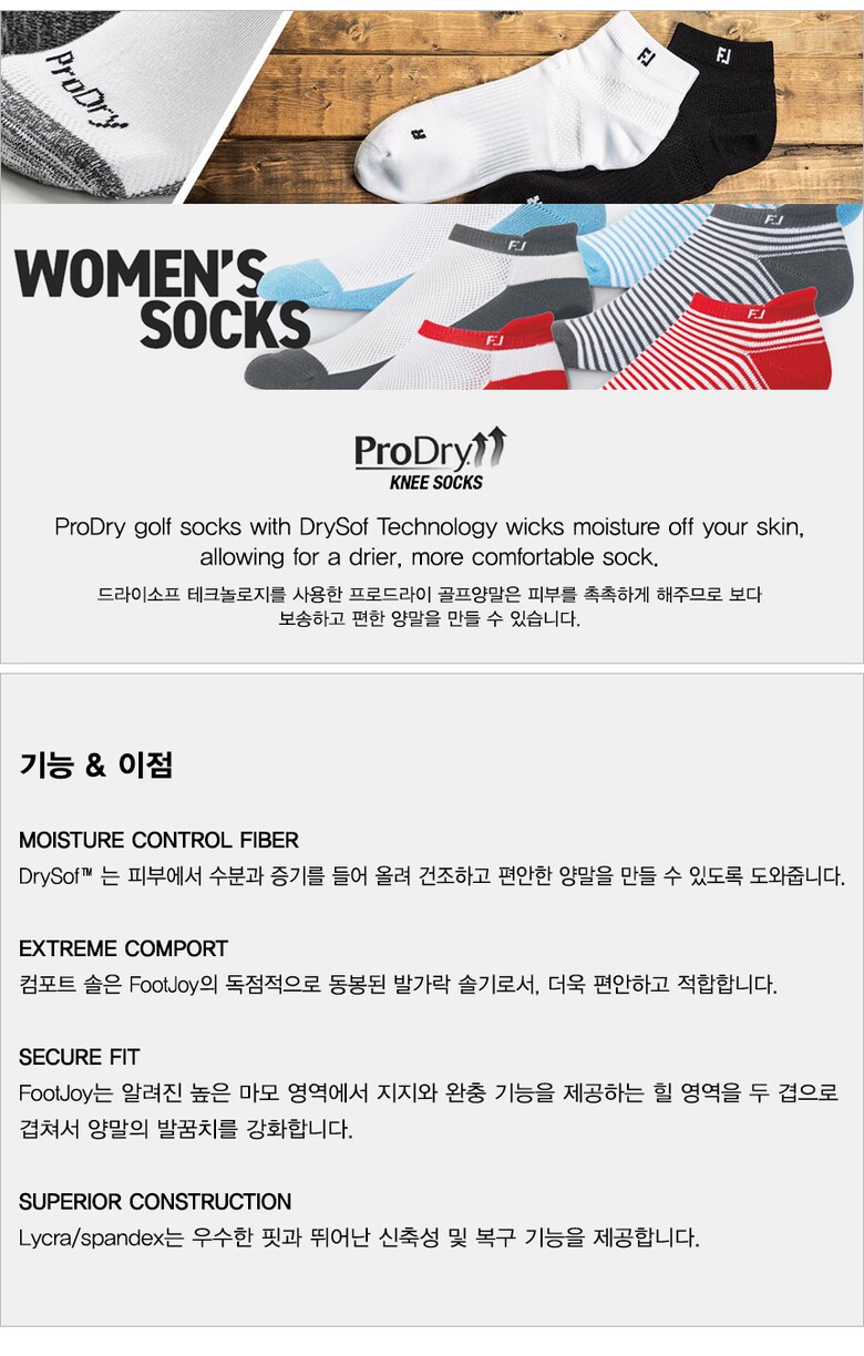 풋조이 정품 여성골프양말 프로드라이 니삭스