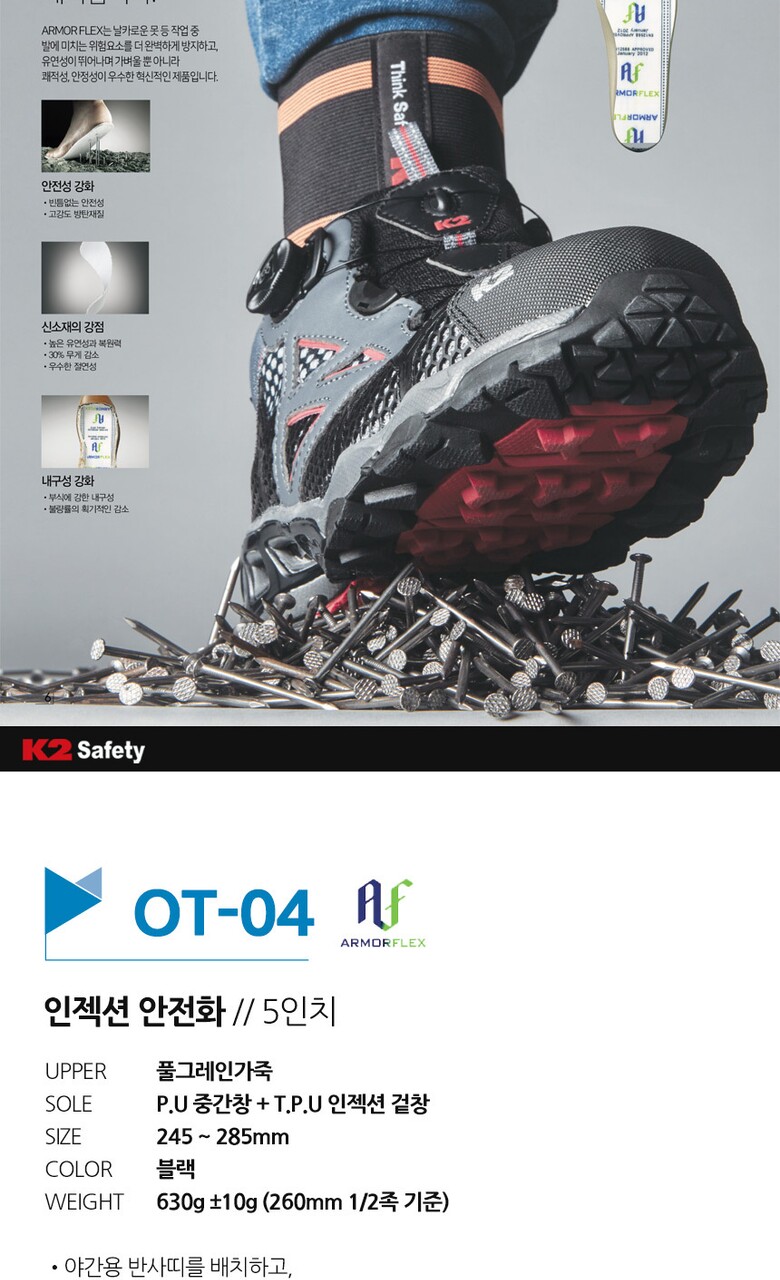 K2 세이프티 통풍 발편한 경량 5인치 안전화 OT-04