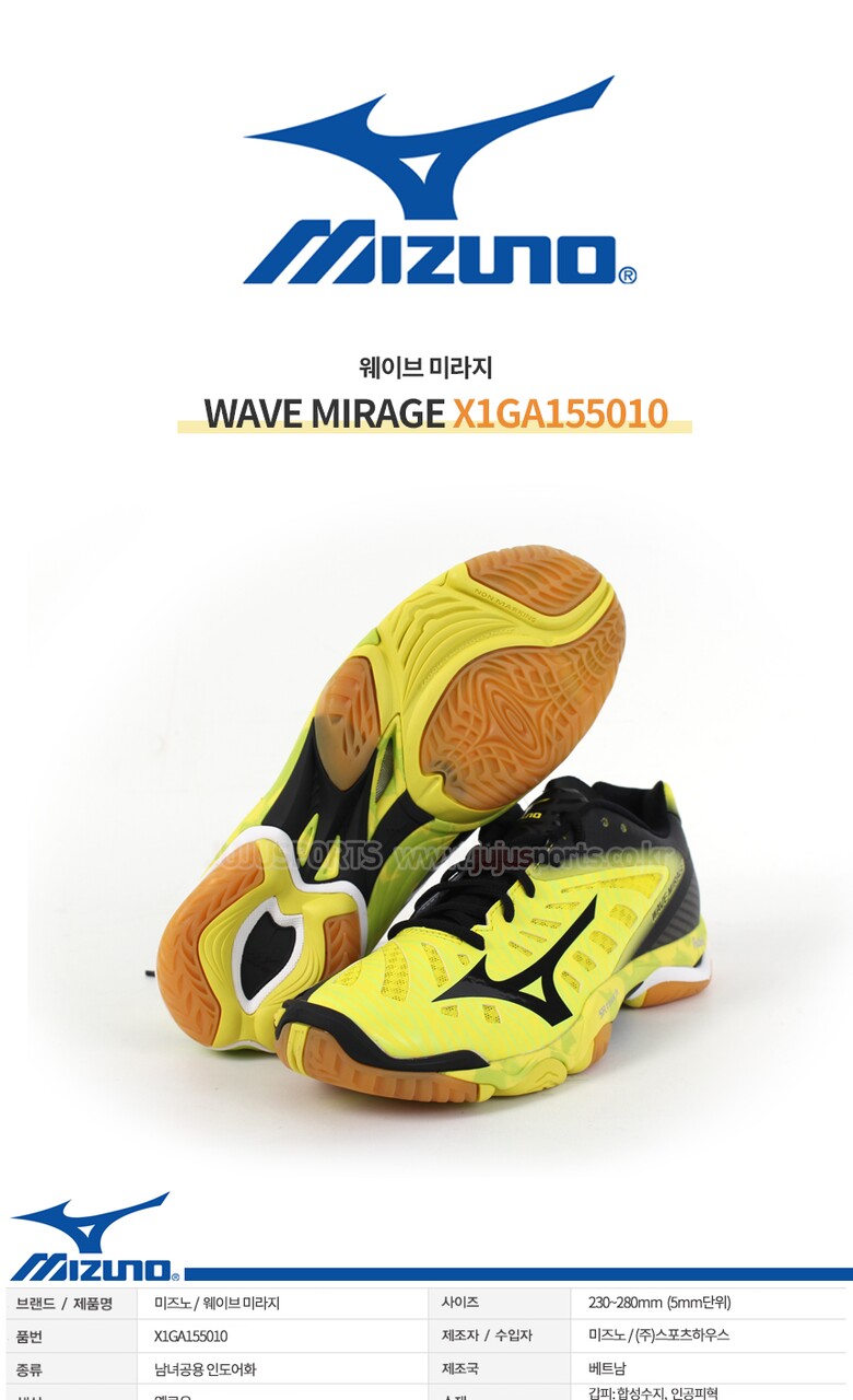 미즈노 웨이브 미라지 X1GA155010 옐로우 배드민턴화