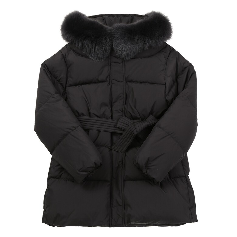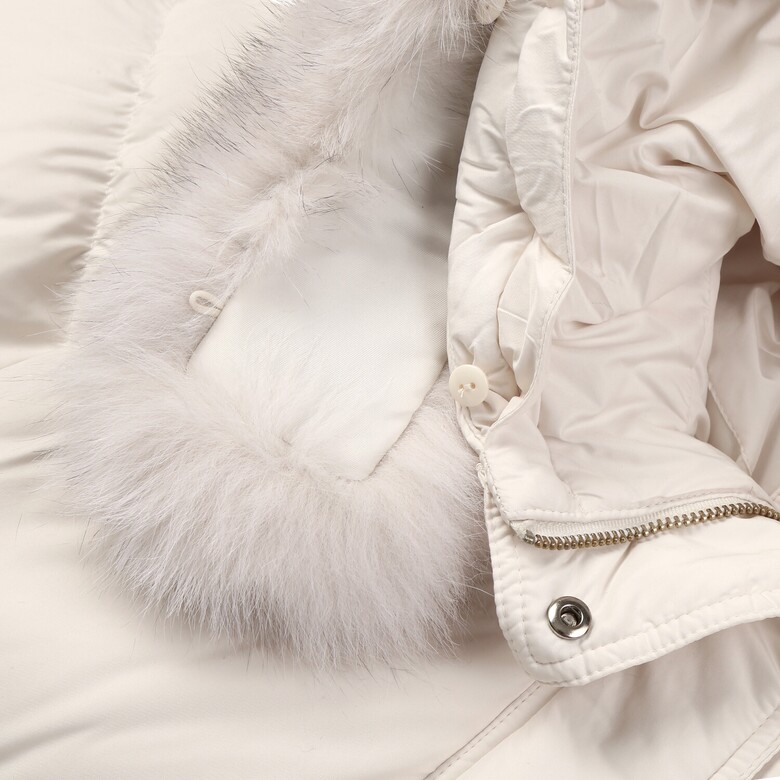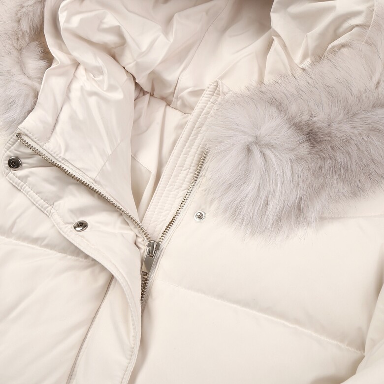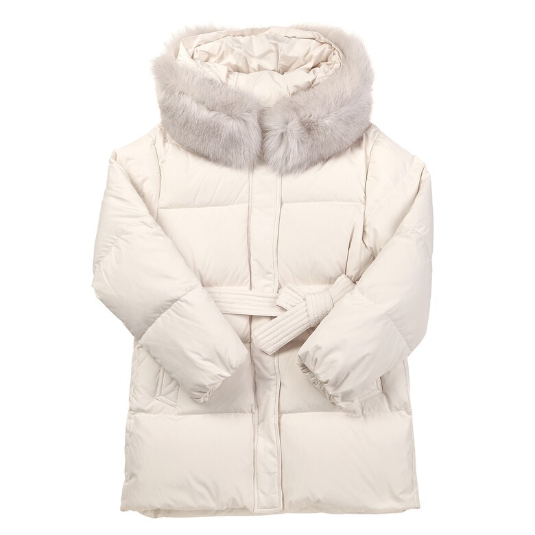 | 1. 제품 소재 (섬유의 조성 또는 혼용률을 백분율로 표시, 기능성인 경우 성적서 또는 허가서) | 겉감 : 폴리에스터100% 안감 : 폴리에스터100% 배색: 천연모피(여우)100% 충전재 : 솜털/오리:80%,깃털/오리20% |