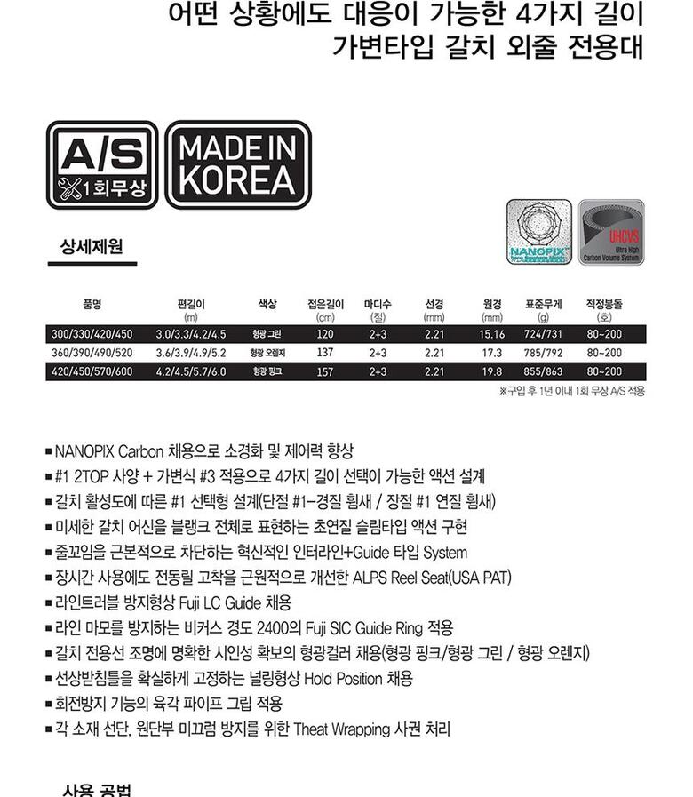 바낙스 카이젠 갈치 NANO 갈치대 선상낚시대 C520