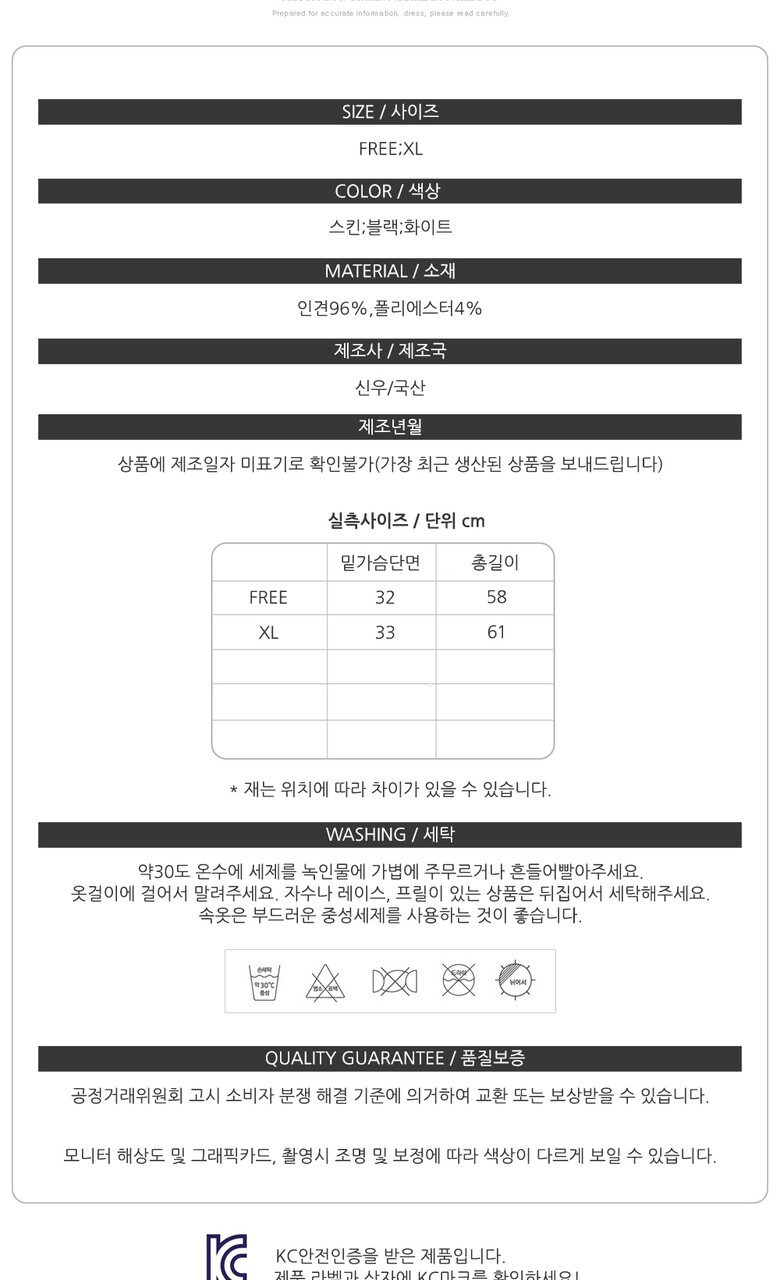 | 1. 제품 소재 (섬유의 조성 또는 혼용률을 백분율로 표시, 기능성인 경우 성적서 또는 허가서) | 인견96%/폴리에스터4% |