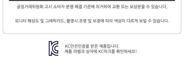 상품불량에 의한 반품, A/S, 품질보증 및 피해보상 등에 관한 사항은 소비자 분쟁해결기준(공정거래위원회 고시) 구매자가 미성년자인 경우에는 상품 구입시 법정대리인이 동의하지 아니하면 미성년자 본인 또는 법정대리인이 구매취소 할 수 있습니다. |
