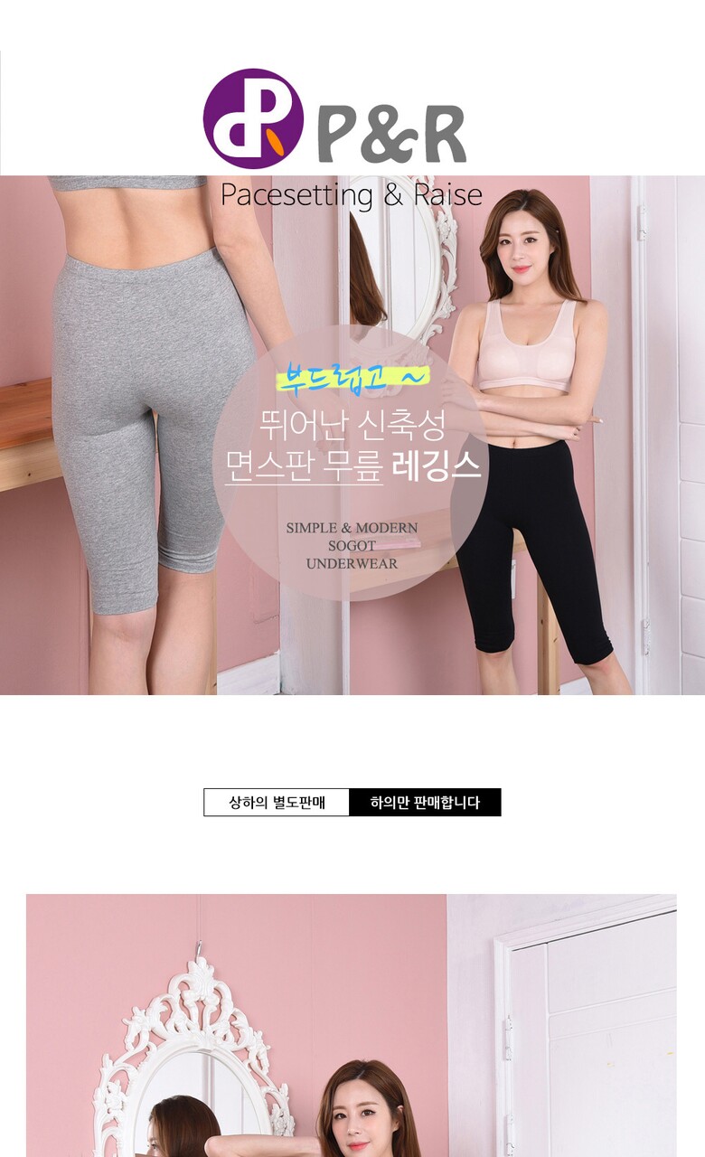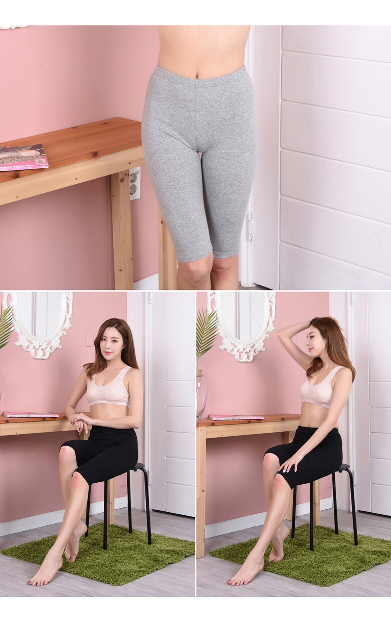 [피엔알]부드럽고 뛰어난 신축성 면스판 무릎 7부레깅스