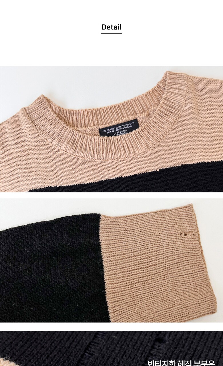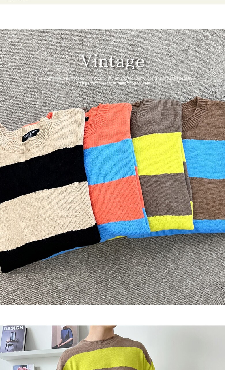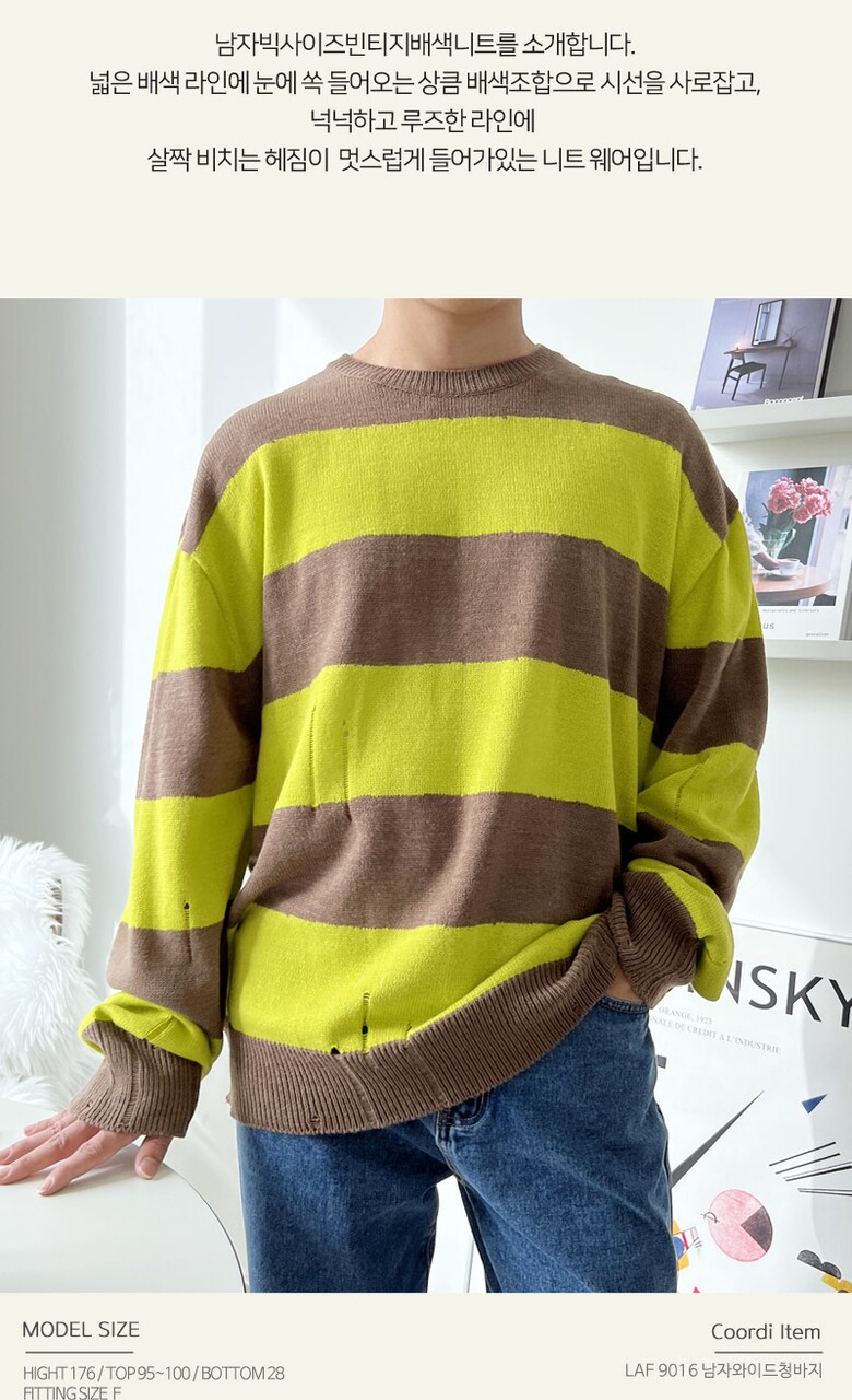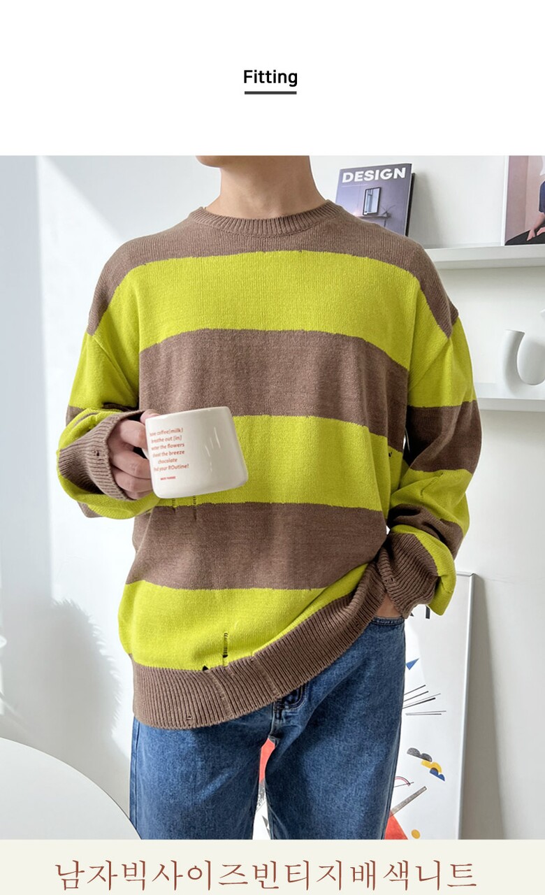 블레오 남성 봄 가을 오버핏 라운드 빅사이즈 빈티지 긴팔 니트