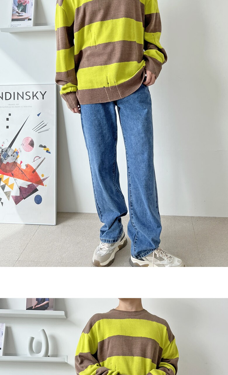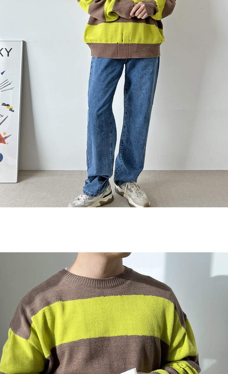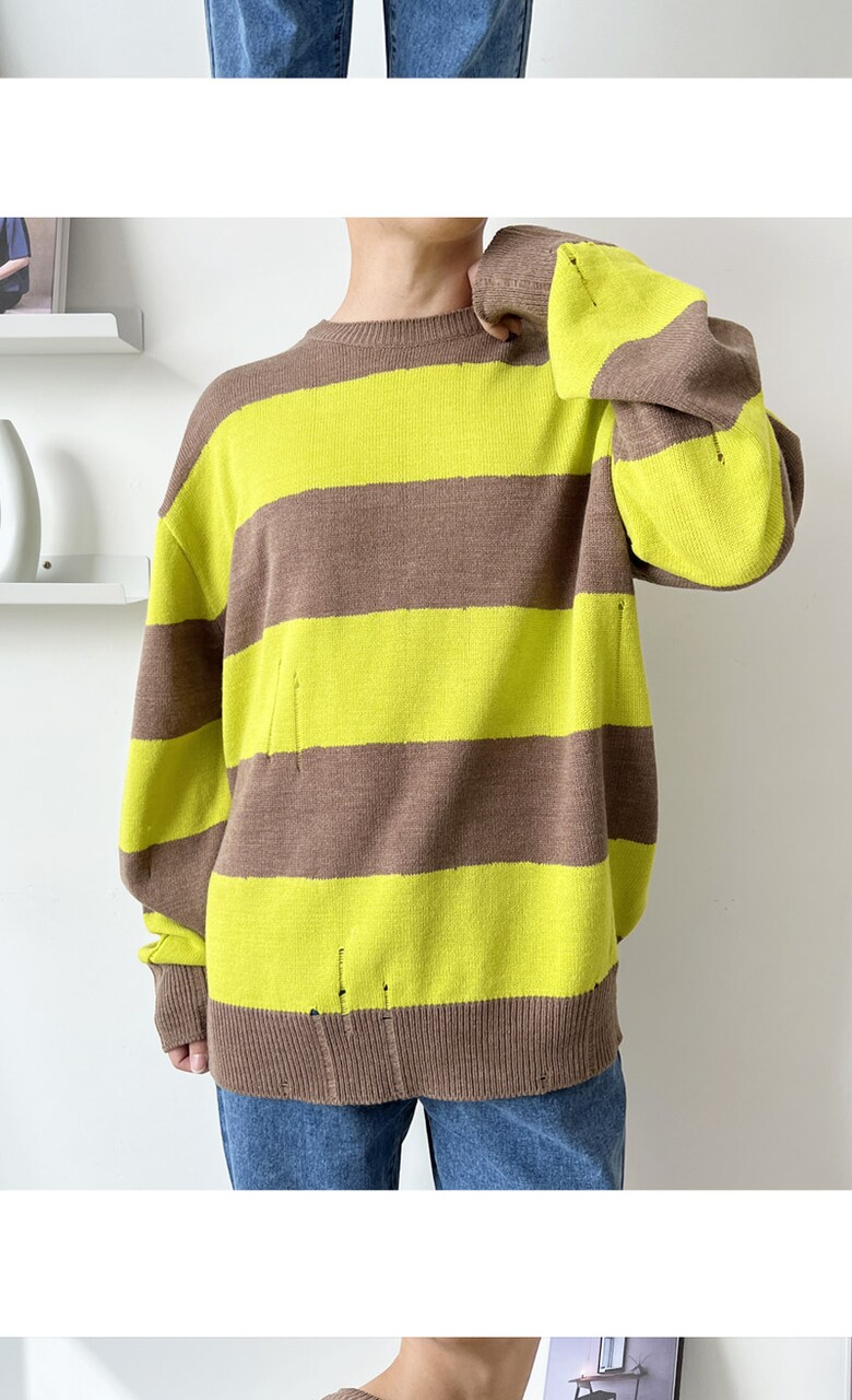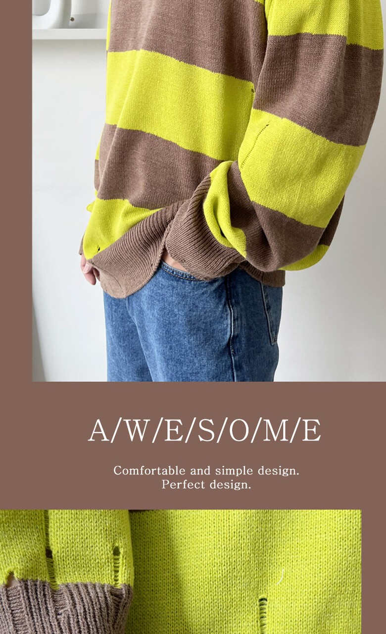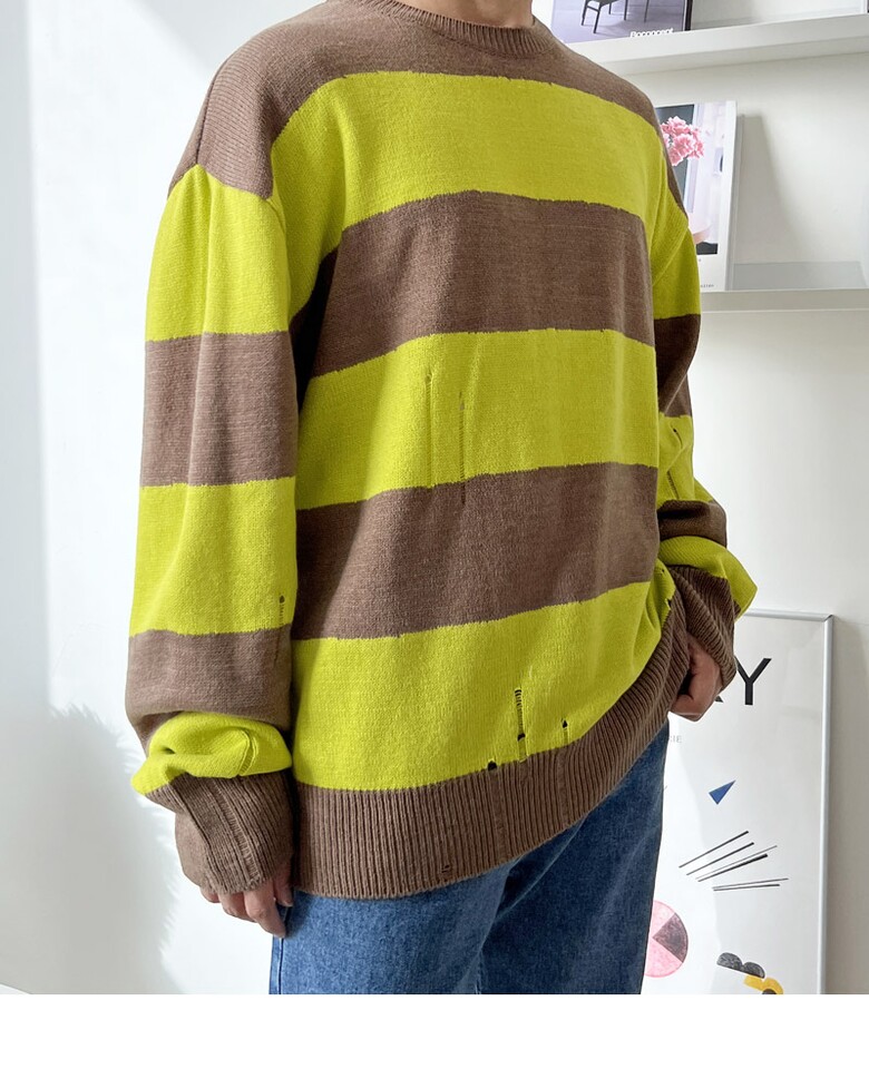 블레오 남성 봄 가을 오버핏 라운드 빅사이즈 빈티지 긴팔 니트