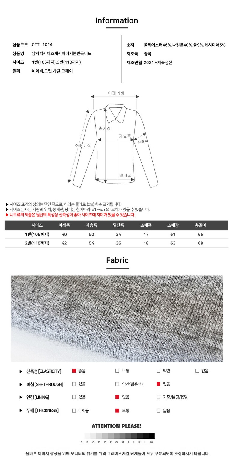 블레오 남성 겨울 반목 캐시미어 빅사이즈 기본 긴팔 니트