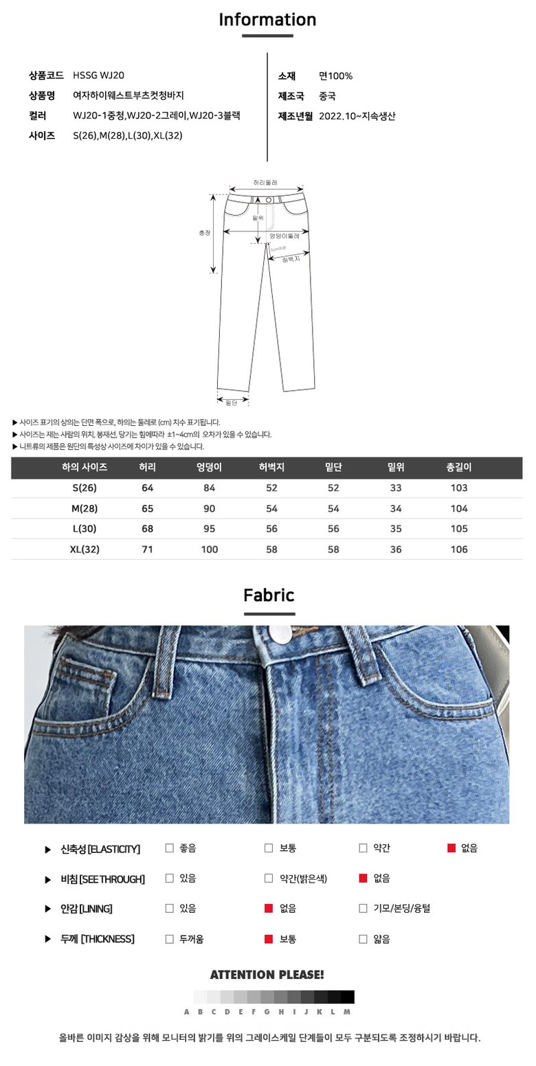 블레오 여성 봄 가을 하이웨스트 데님팬츠 부츠컷 청바지