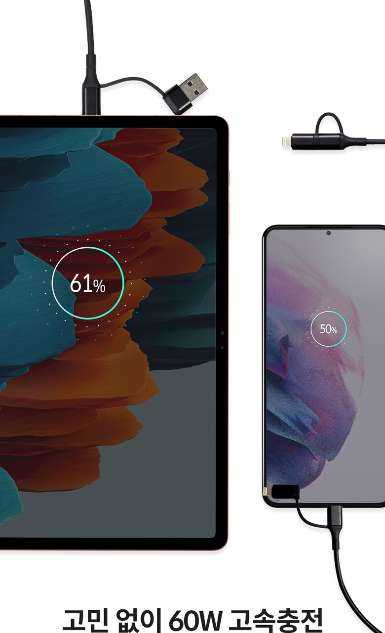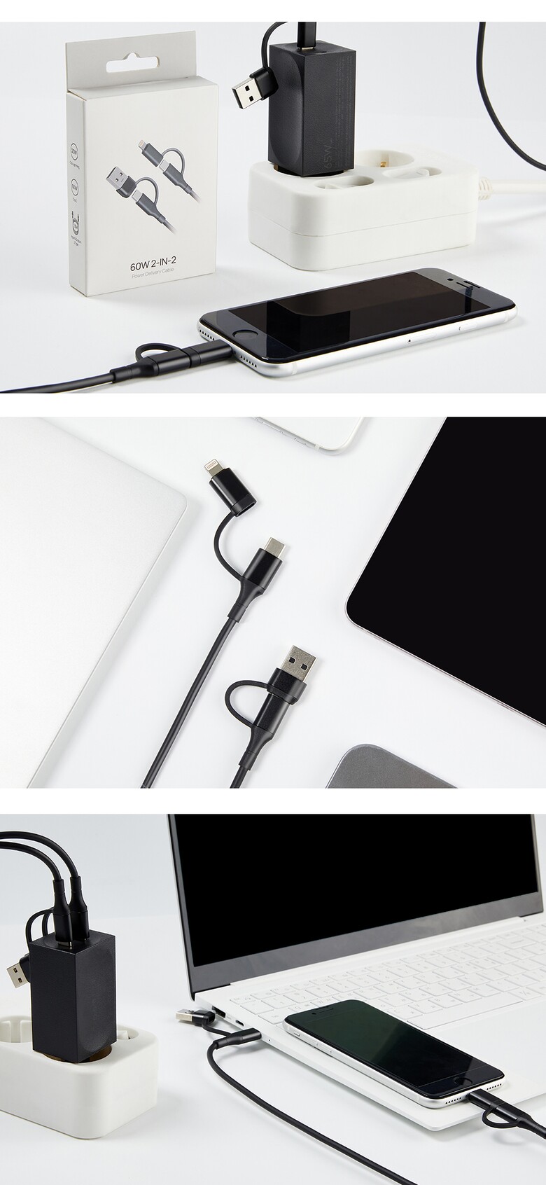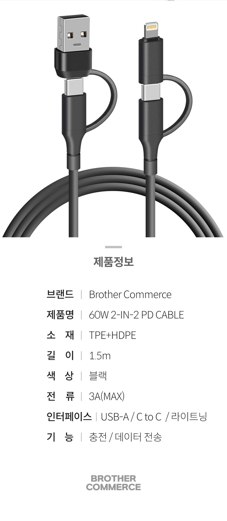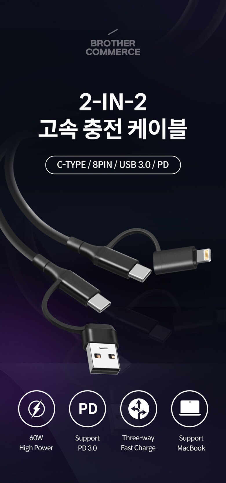 브커 2-IN-2 60W 초고속 멀티 충전 케이블