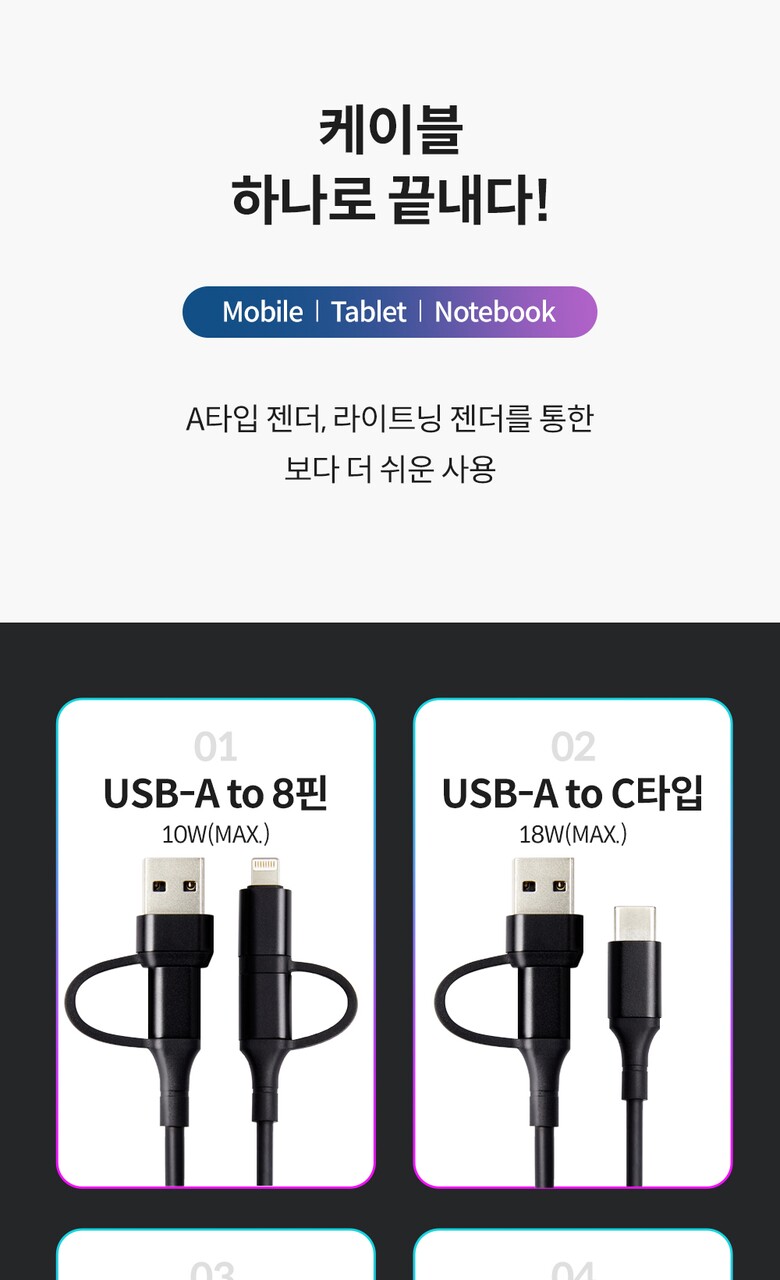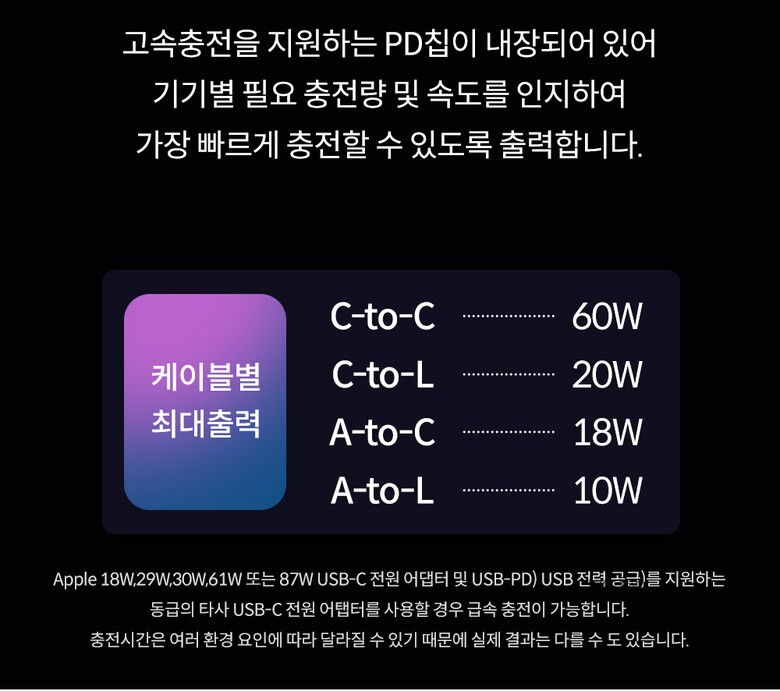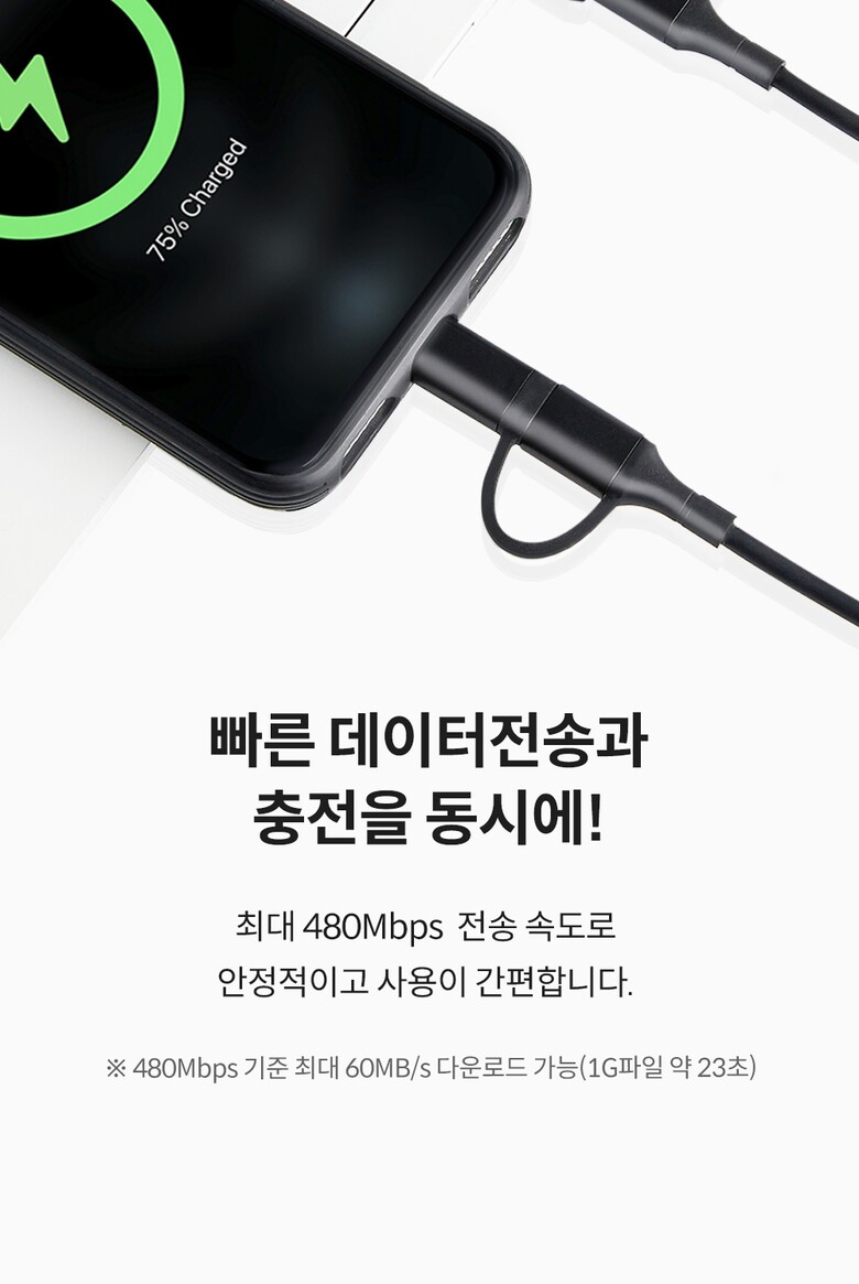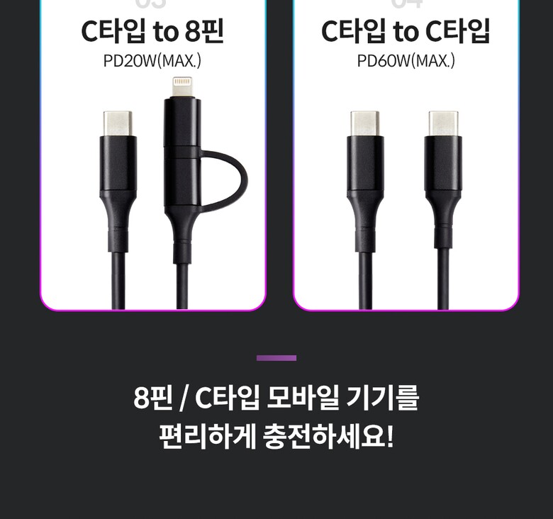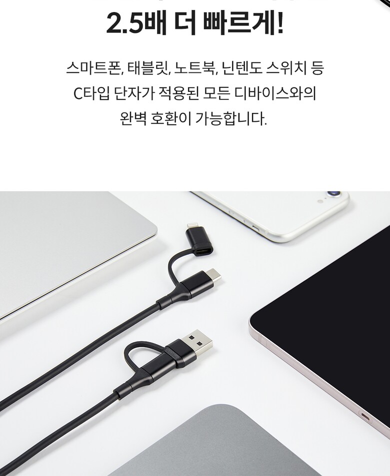 브커 2-IN-2 60W 초고속 멀티 충전 케이블