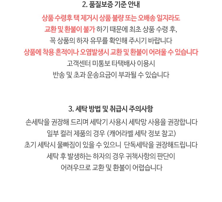 6. 세탁방법 및 취급시 주의사항 | 미온수,중성세제,손세탁 |