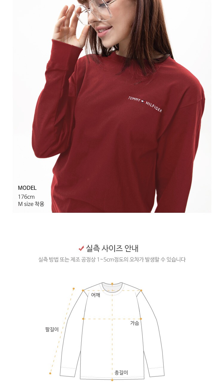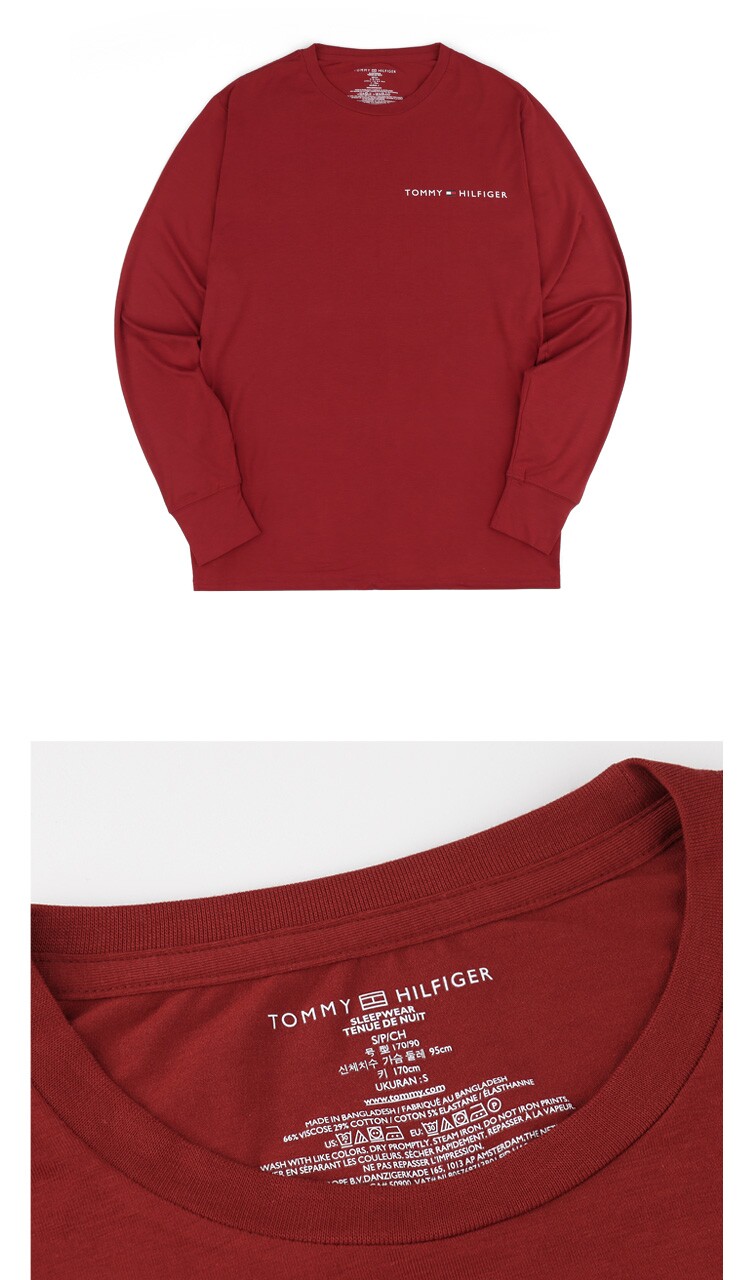 [타미힐피거] 프리미엄 레터링 롱 슬리브 긴팔티셔츠 와인