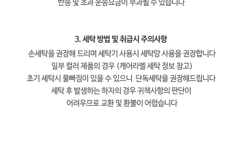 6. 세탁방법 및 취급시 주의사항 | 미온수,중성세제,손세탁 및 케어라벨 세탁정보 참고 |