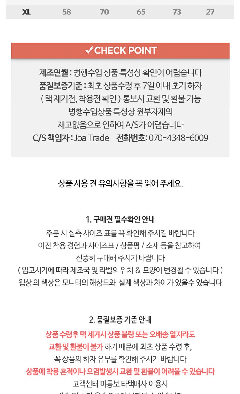 9. A/S 책임자와 전화번호 | 조아무역 070-4348-6009 |
