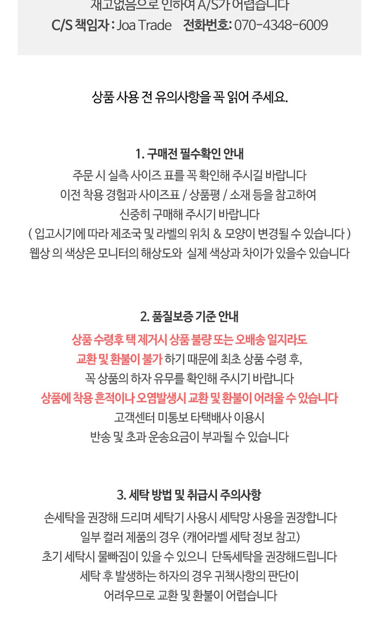 6. 세탁방법 및 취급시 주의사항 | 미온수,중성세제,손세탁 및 케어라벨 세탁정보 참고 |