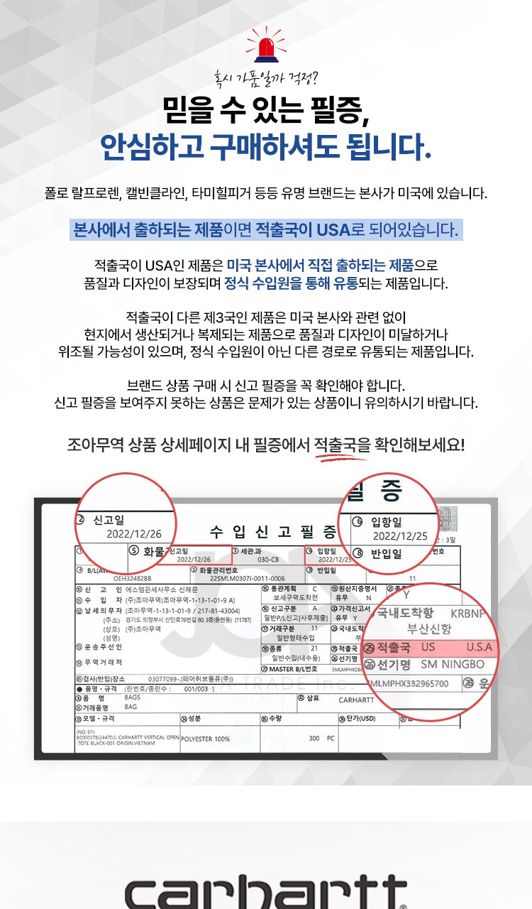 5. 제조사 | 칼하트/조아무역 |