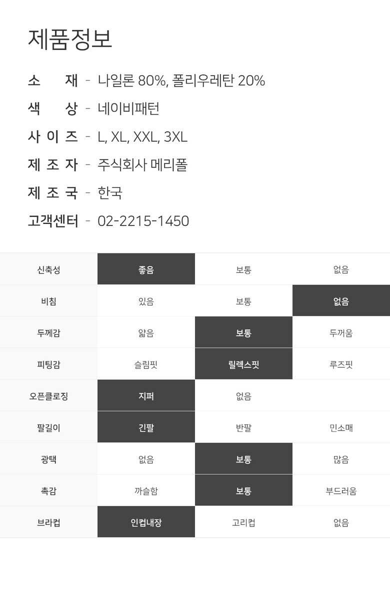 1. 제품 소재 (섬유의 조성 또는 혼용률을 백분율로 표시, 기능성인 경우 성적서 또는 허가서) | 폴리에스터 80% , 폴리우레탄 20% |