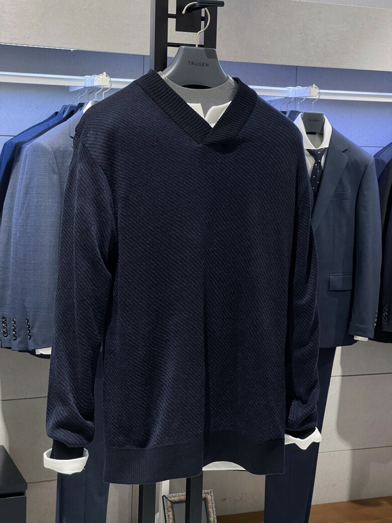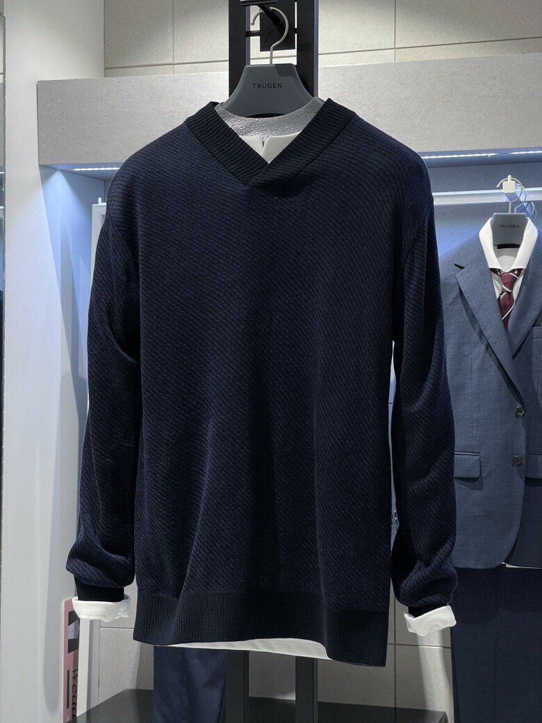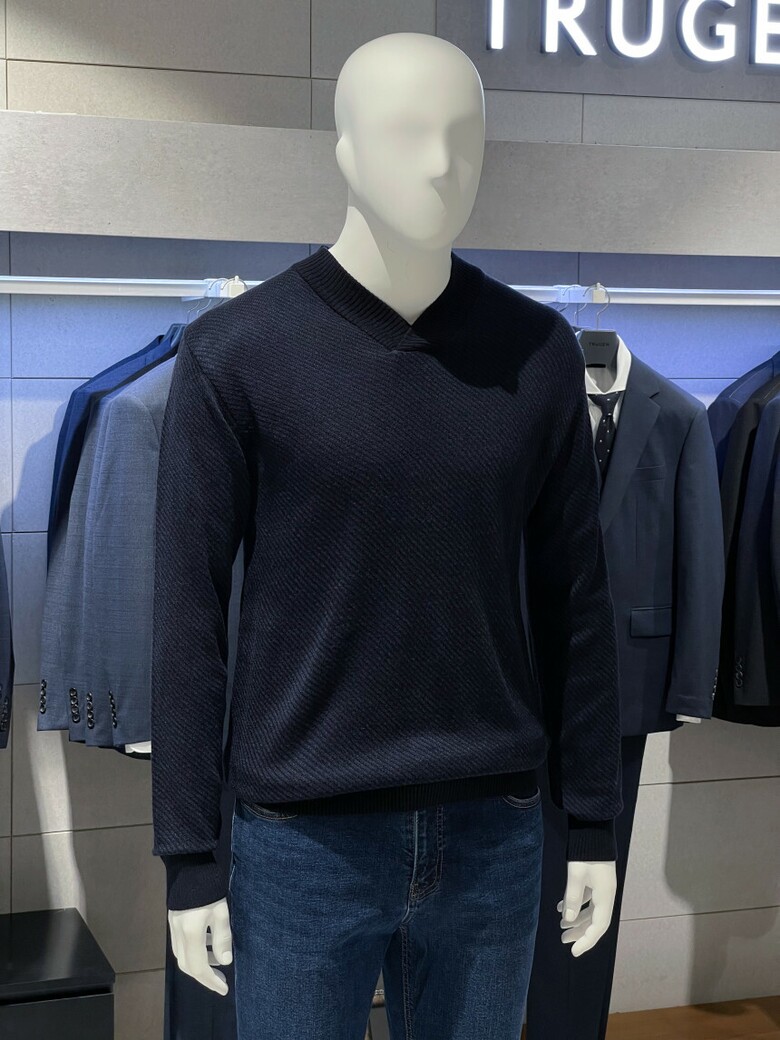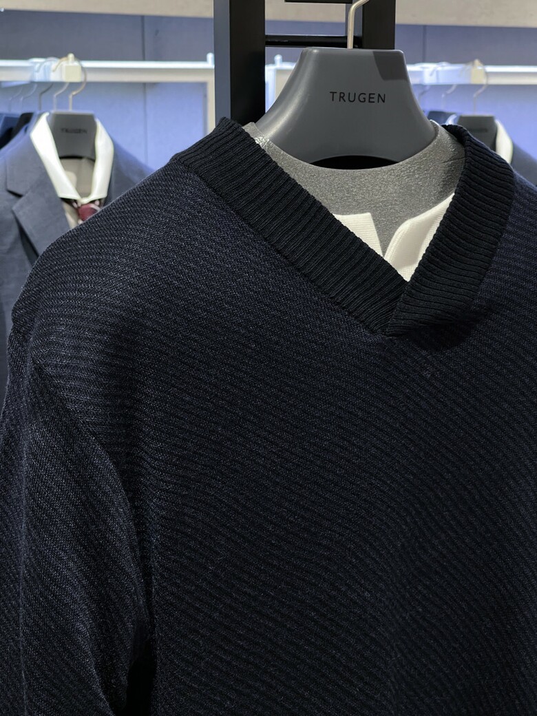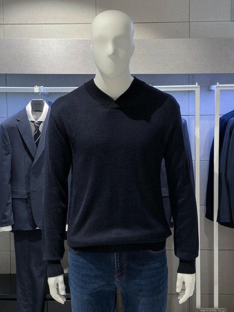 트루젠 네이비 투톤짜임 긴팔 브이넥 니트 티셔츠 228818032014