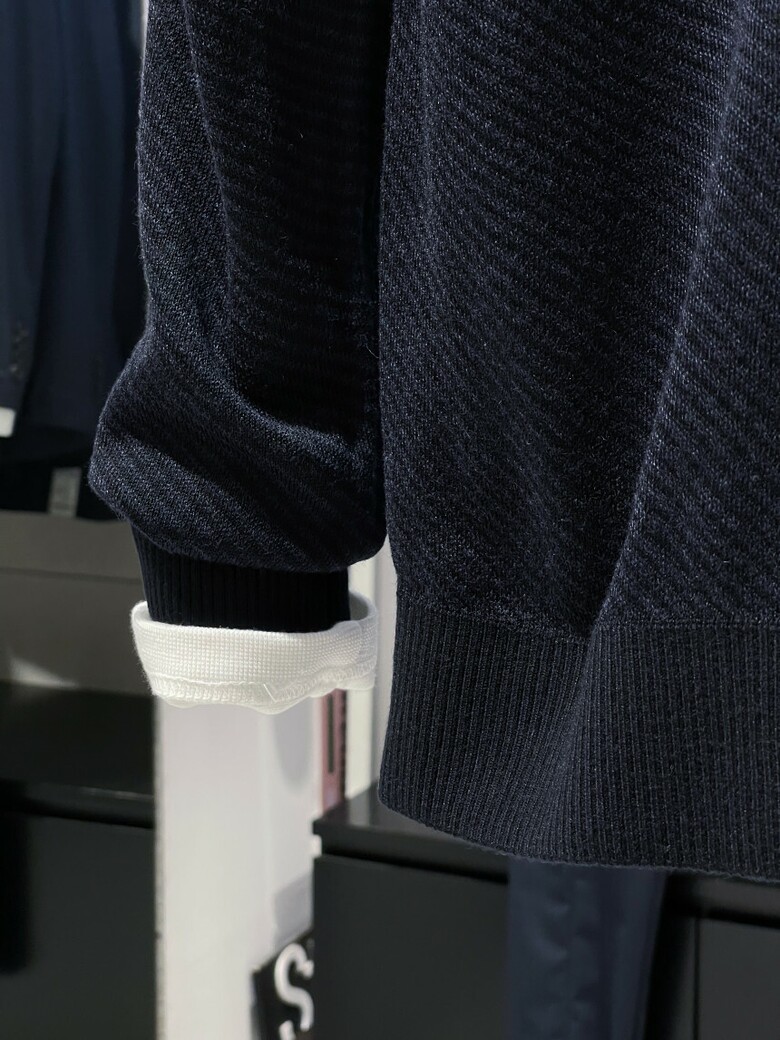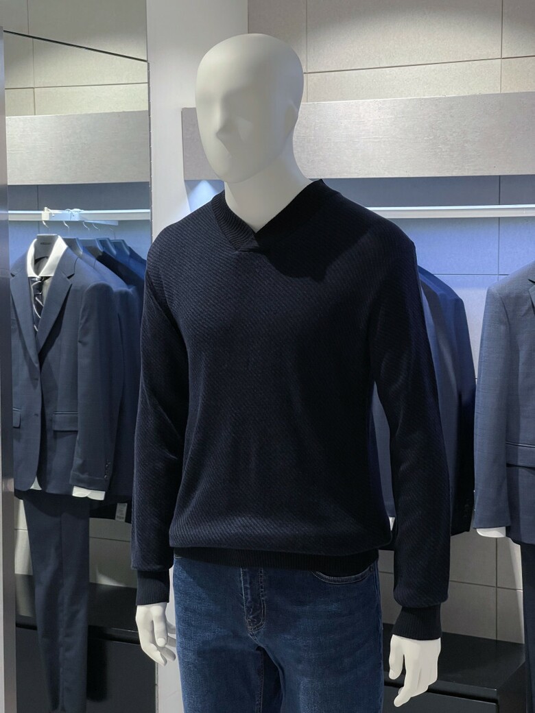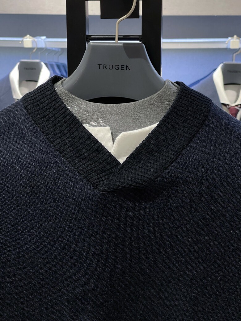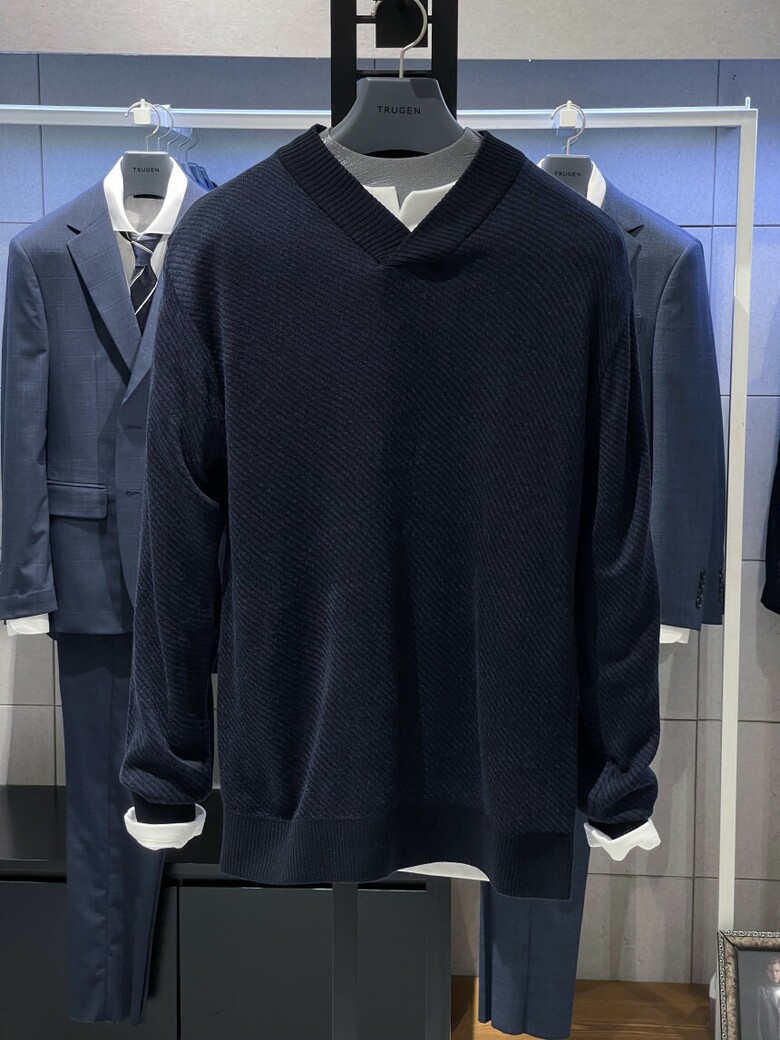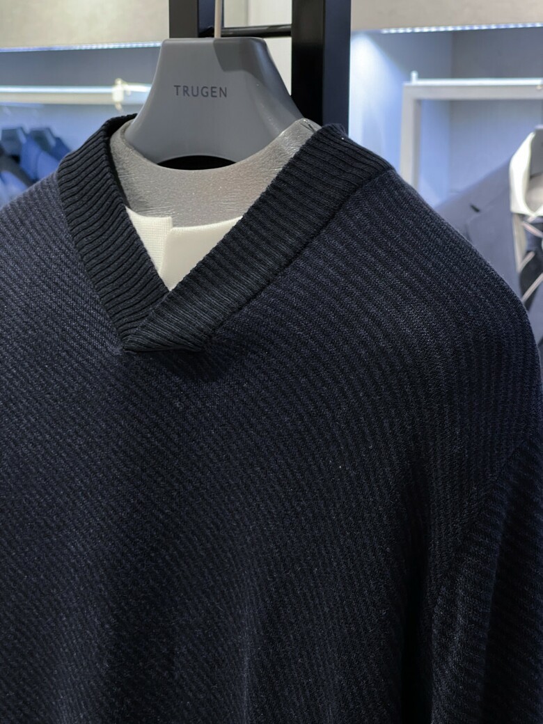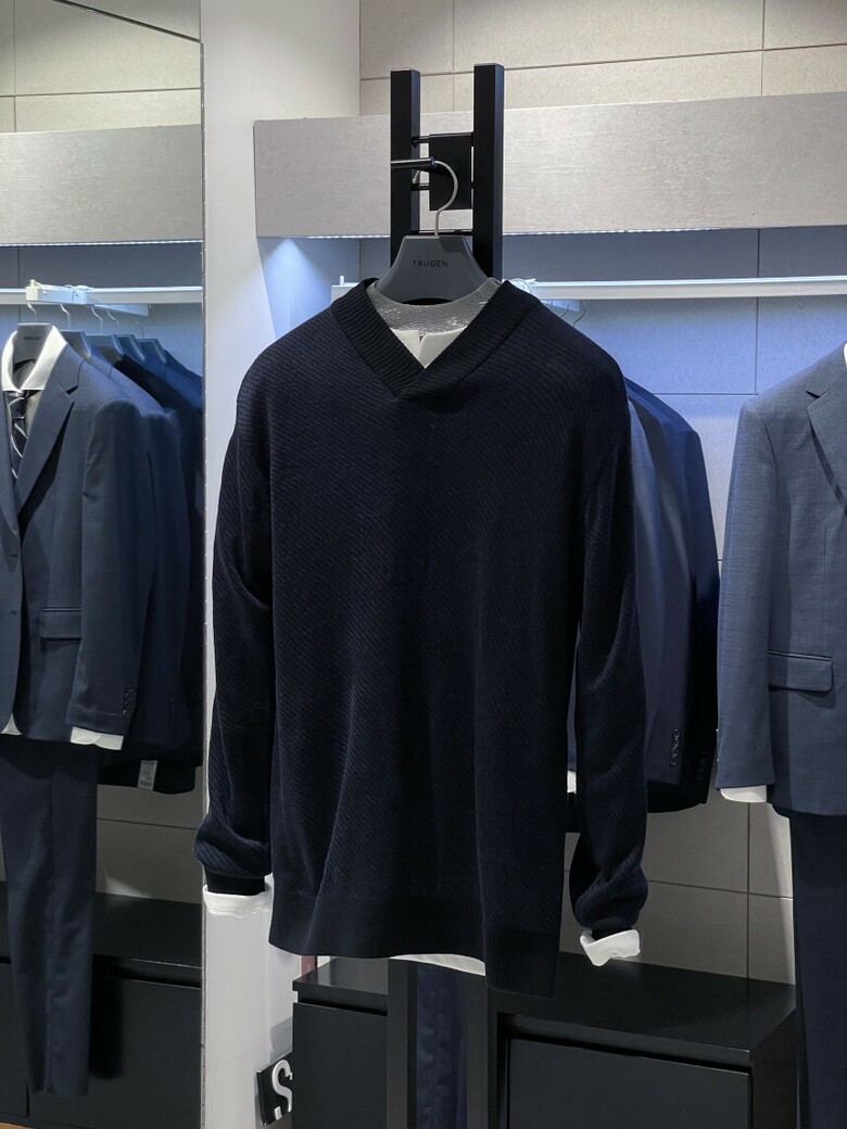 트루젠 네이비 투톤짜임 긴팔 브이넥 니트 티셔츠 228818032014
