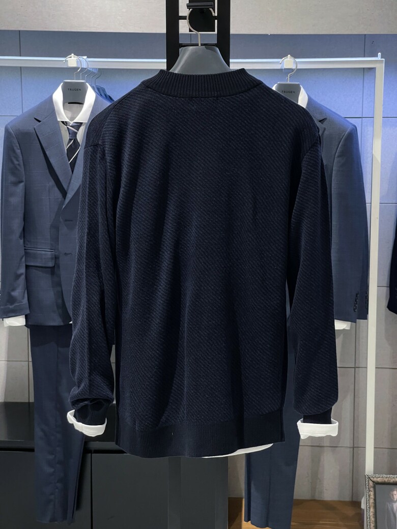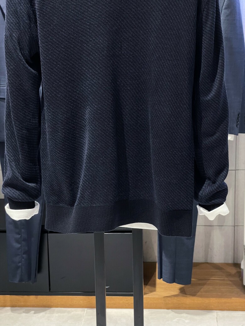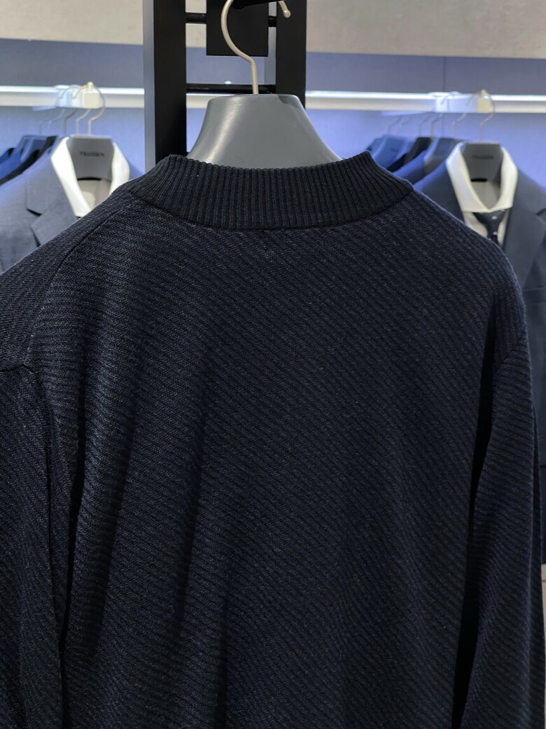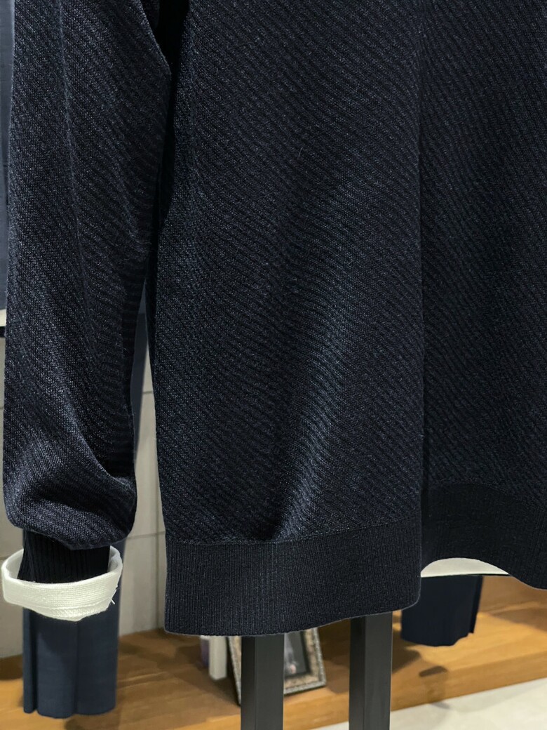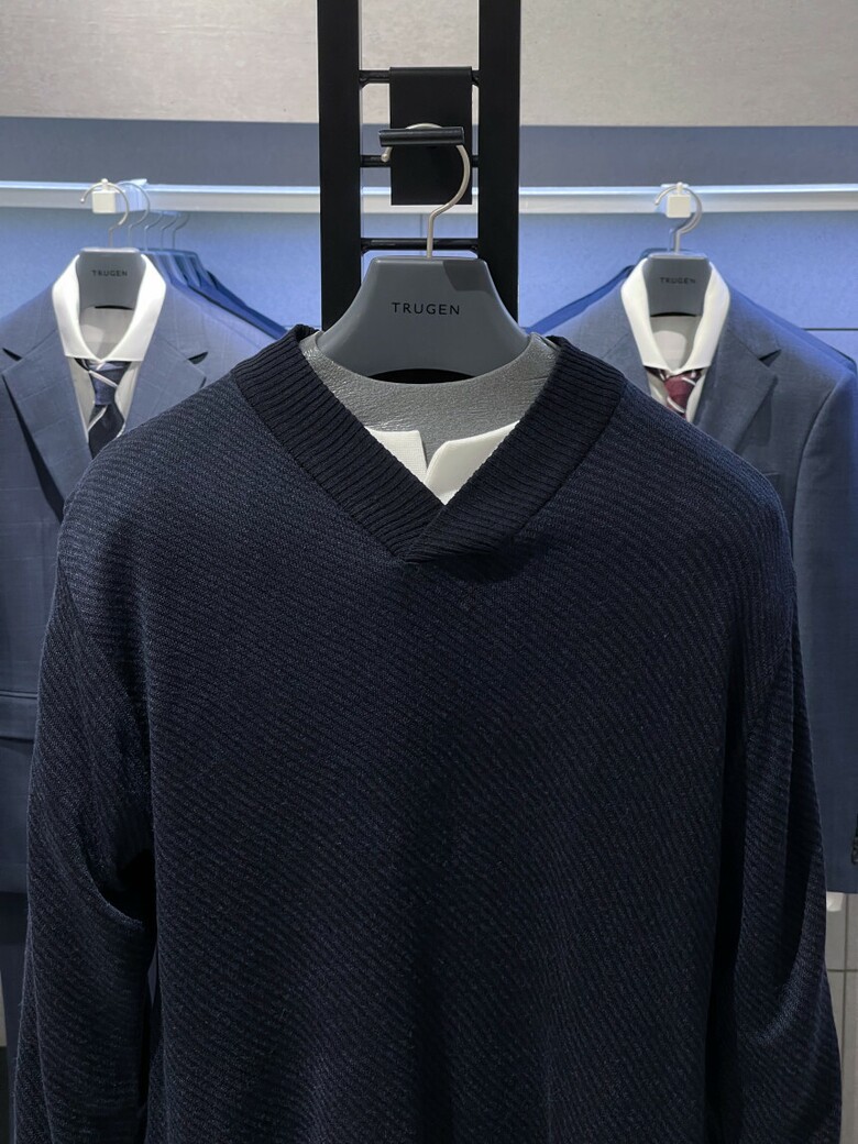트루젠 네이비 투톤짜임 긴팔 브이넥 니트 티셔츠 228818032014
