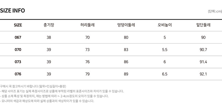 | 3. 치수 | 사이즈:067,070,073,076 |