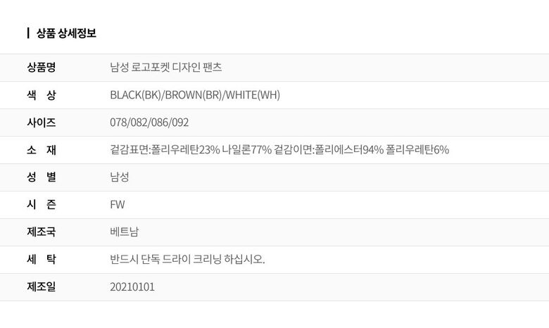 [팜스프링스] 남성 로고포켓 디자인 팬츠_SPBM203716