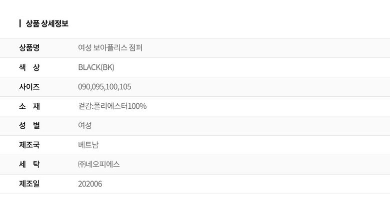 | 1. 제품 소재 (섬유의 조성 또는 혼용률을 백분율로 표시, 기능성인 경우 성적서 또는 허가서) | 겉감:폴리에스터100% |