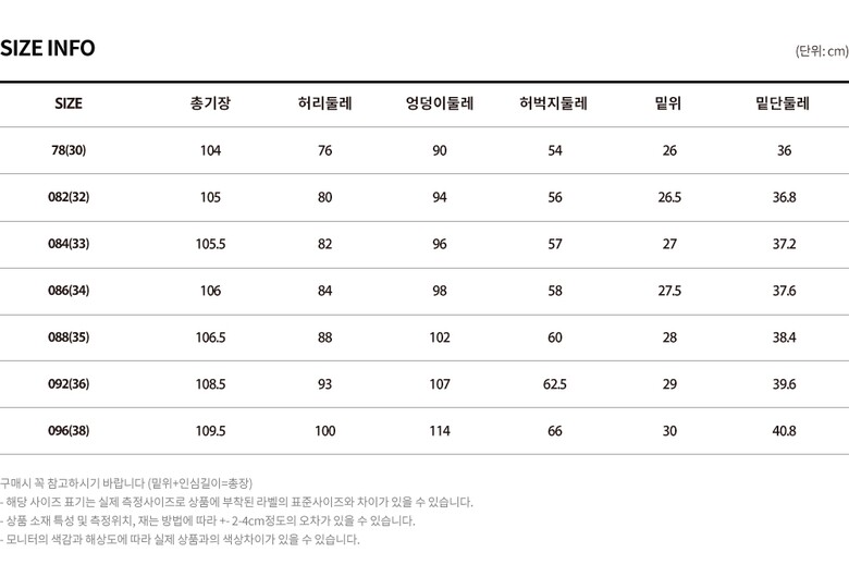 | 3. 치수 | 사이즈:078,082,084,086,088,092,096 |