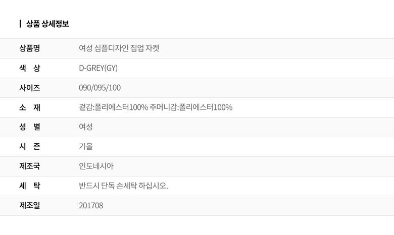 | 6. 세탁방법 및 취급시 주의사항 | 이 상품은 단독손세탁 하십시오 |
