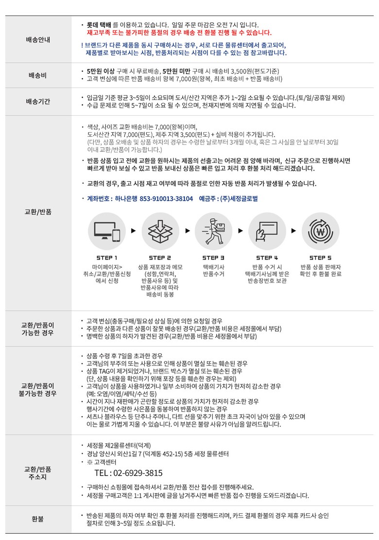 • 반품환불은 상품 회수 후 처리 됩니다.