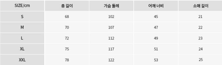 상세페이지 하단의 사이즈표를 참조 바랍니다.