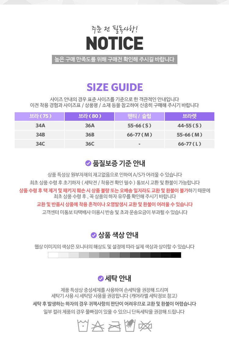 3. 치수 | 브라 : S,M,L 팬티 : S,M |