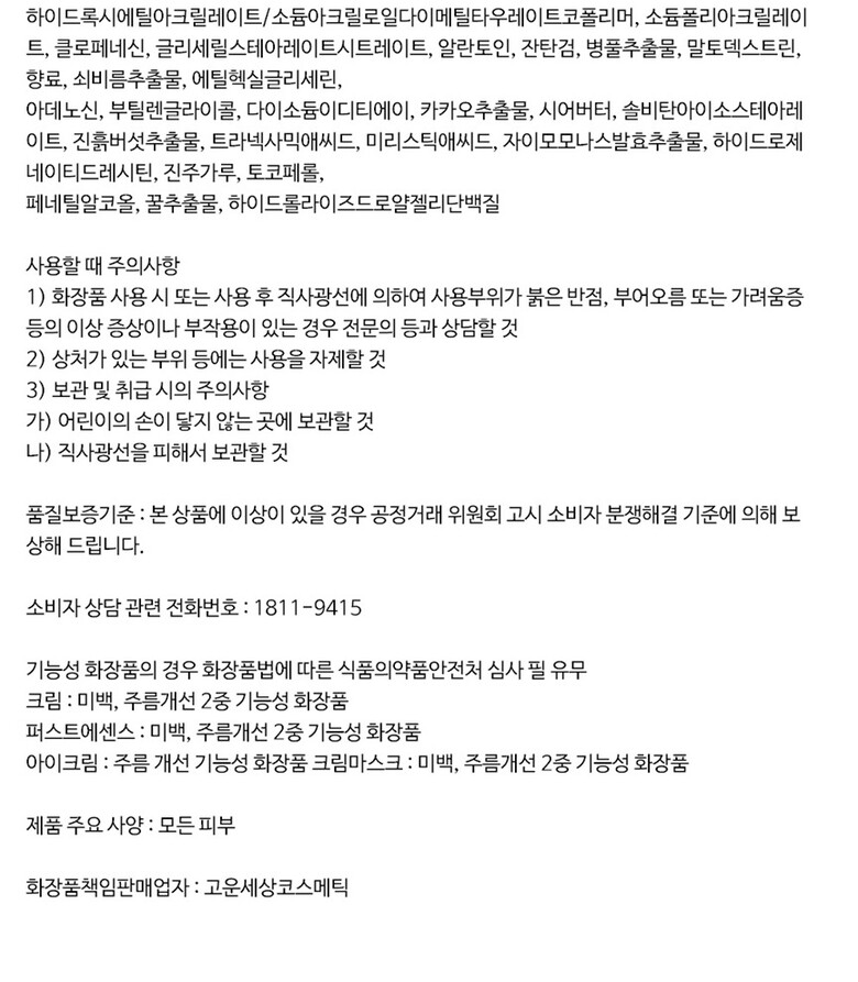 8. 기능성 화장품의 경우 화장품법에 따른 식품의약품안전청 심사 필 유무 | 상세페이지 참조 |