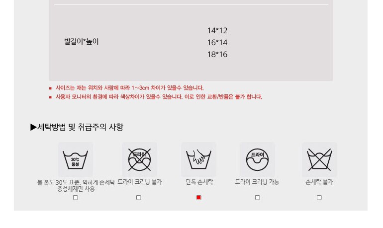 6. 세탁방법 및 취급시 주의사항 | 중성세제 손세탁 |