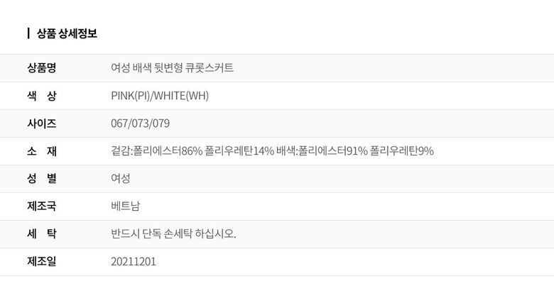 [팜스프링스] 여성 배색 뒷변형 큐롯스커트_SSKL221832