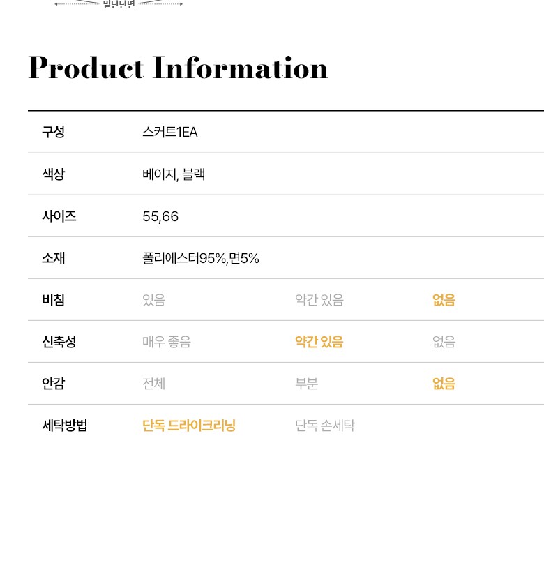 1. 제품 소재 (섬유의 조성 또는 혼용률을 백분율로 표시, 기능성인 경우 성적서 또는 허가서) | 폴리에스터95%,면5% |