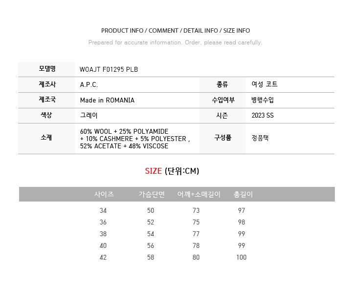 | 1. 제품 소재 (섬유의 조성 또는 혼용률을 백분율로 표시, 기능성인 경우 성적서 또는 허가서) | 상세페이지 참조 |
