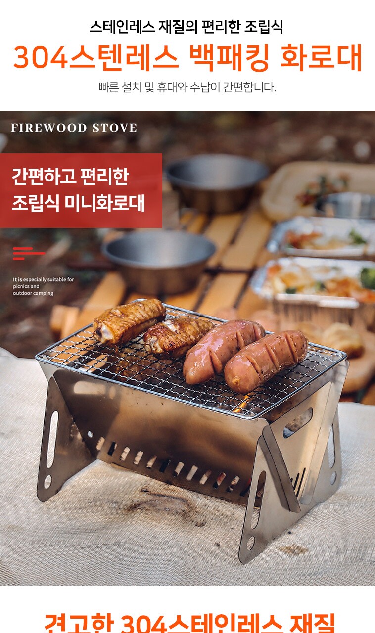 캠핑문 캠핑 스테인레스 조립식 백패킹 미니 화로대