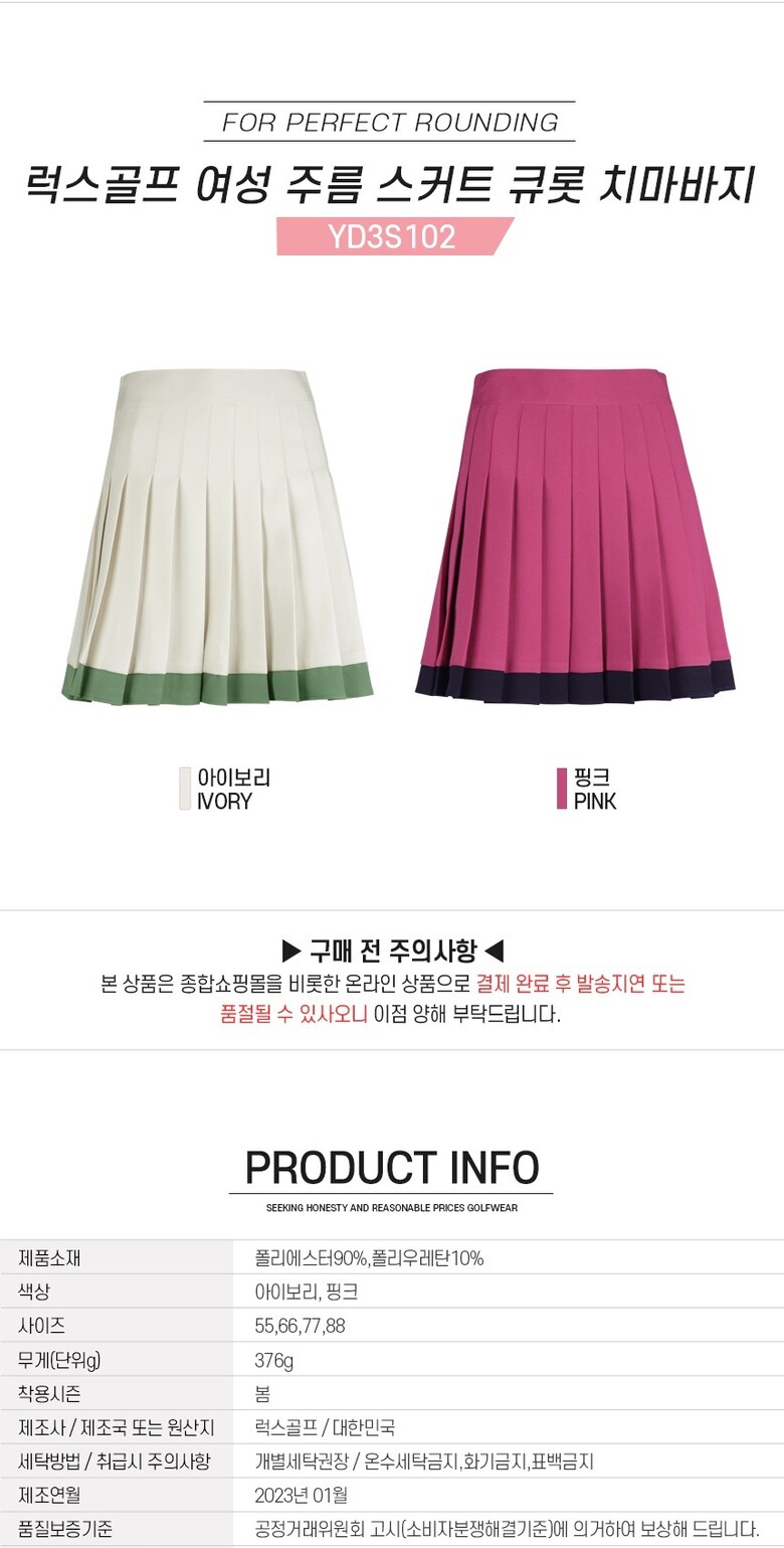 보스케 여성 봄 여름 골프웨어 골프 큐롯 주름 A라인 스커트 치마바지